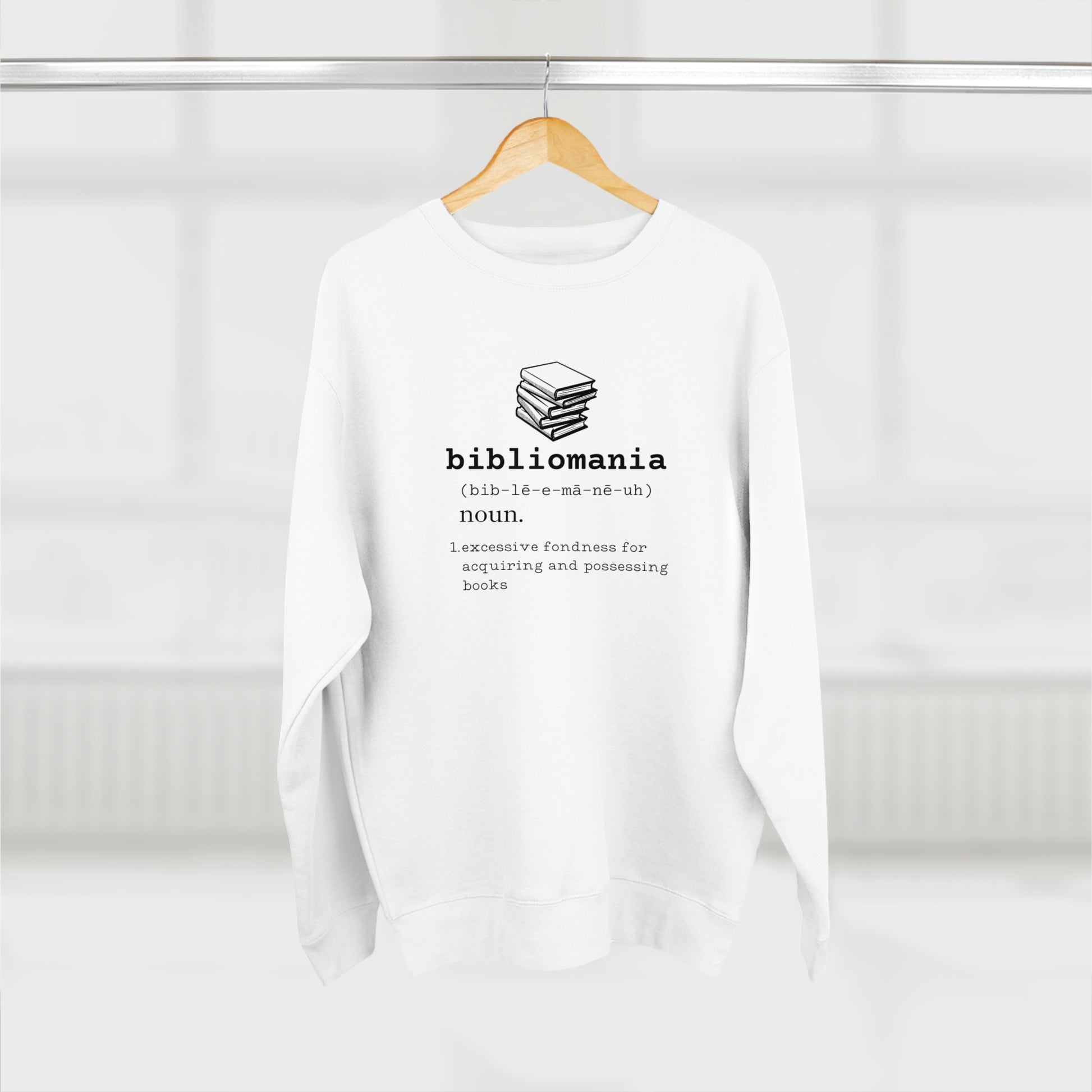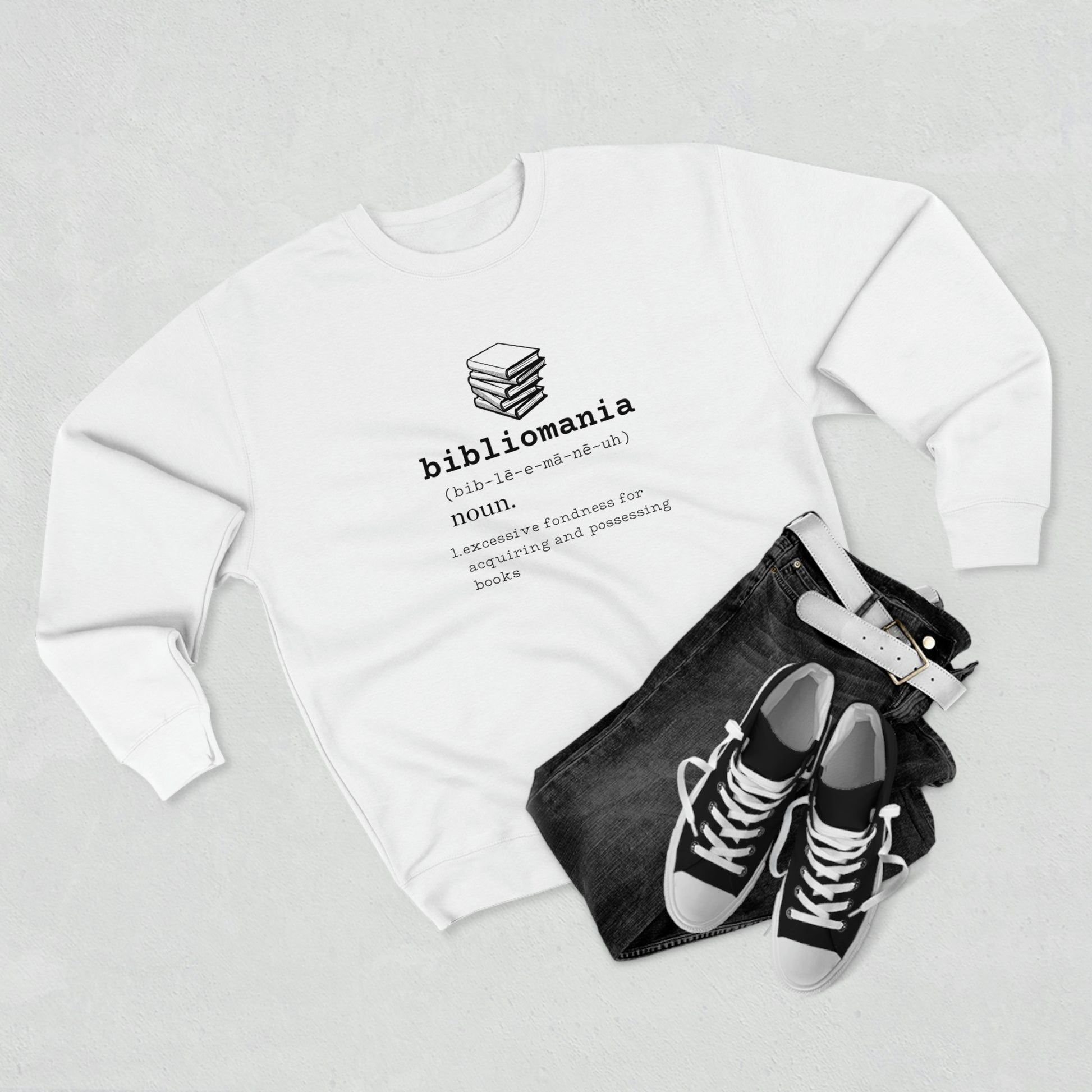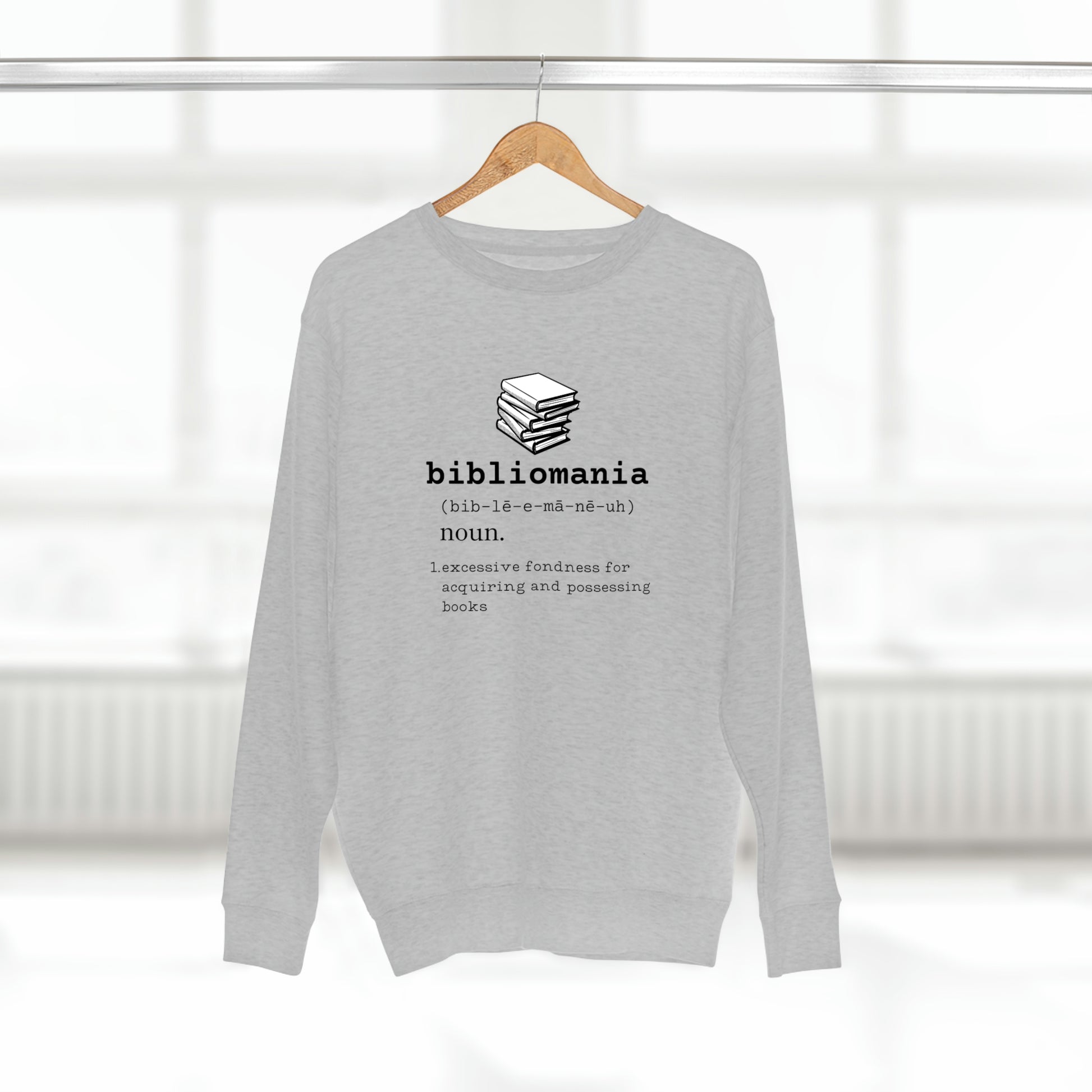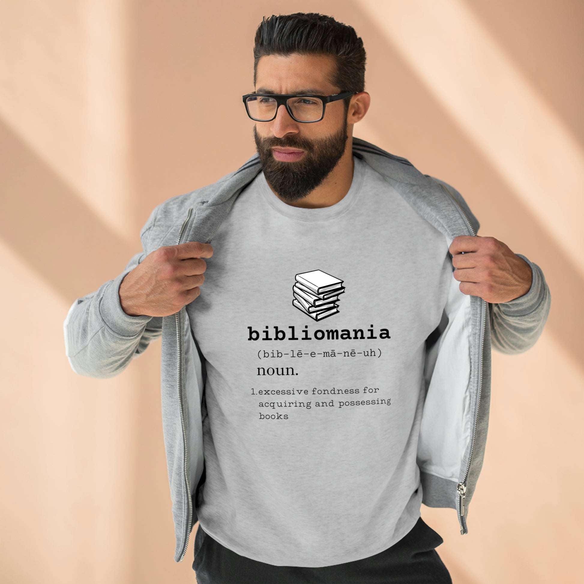 Bibliomania Excessive Fondness of Books - Premium Crewneck Sweatshirt - Book Addict, Funny Book Lover Gift, Gag Book Collector