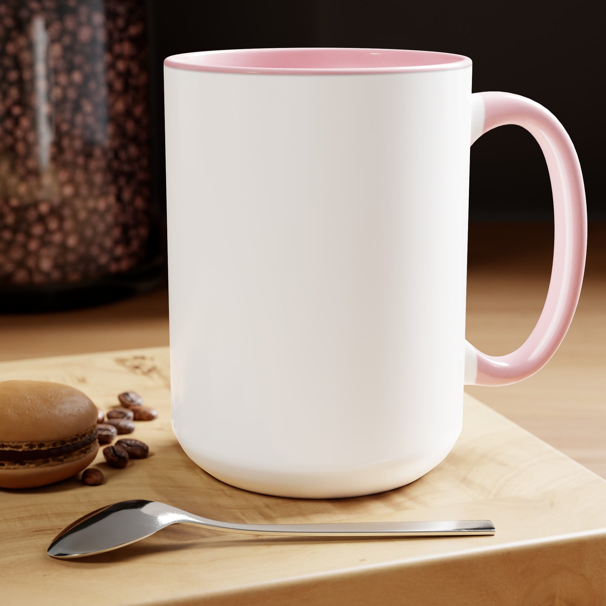 Here to bring big gulps of coffee and style, these "COFFEE. SMILE LAUGH. REPEAT." two-tone coffee mugs help people around the world start the day just right. Choose between 5 different color options to best complement your designs. Each mug comes with a colored handle, a colored interior, and a classy, glossy finish so that your mugs become an instant favorite. .: Material: 100% ceramic .: One size: 15oz (0.44 l) .: Glossy finish .: Interior and handle available in 5 colors .: Easy-grip C-shaped handle