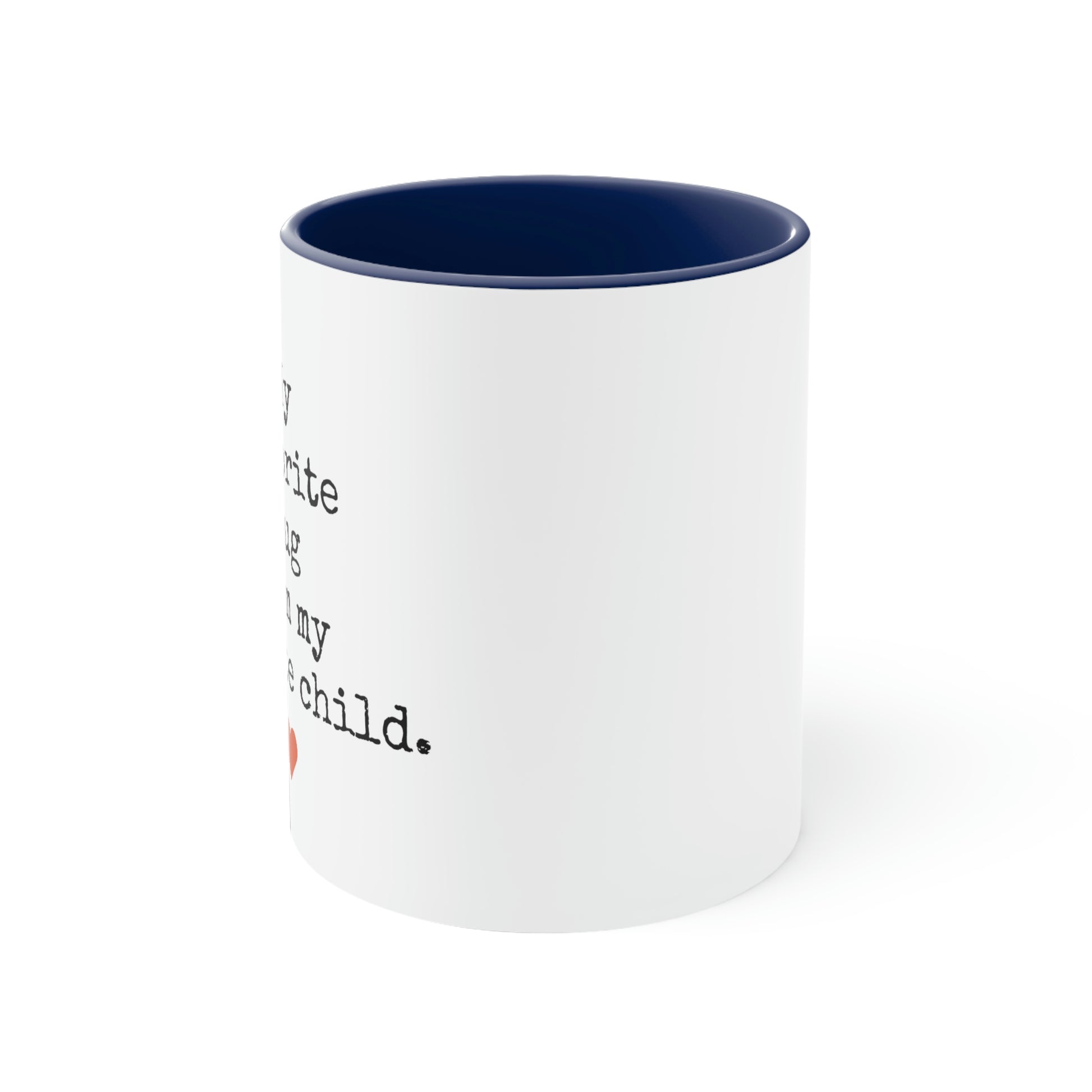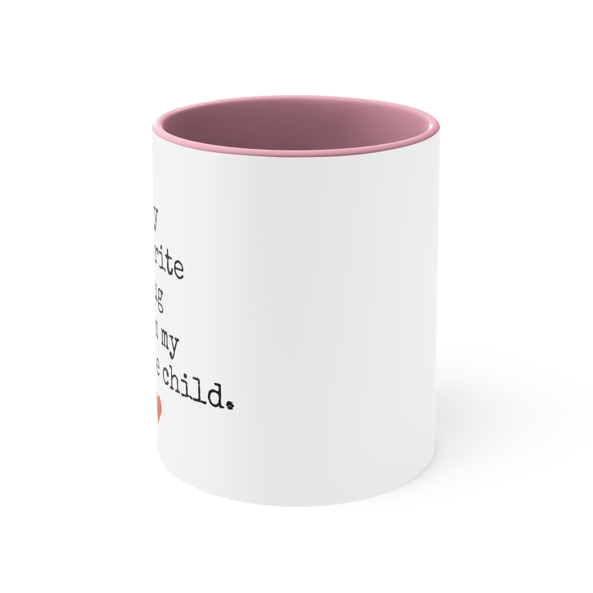 Add some color to your routine with our "FAVORITE MUG FROM MY FAVORITE CHILD" two-tone, custom accent coffee mug. This 11oz mug features an accented C-Handle that is comfortable to use, as well as an accented interior to add more contrast and character.