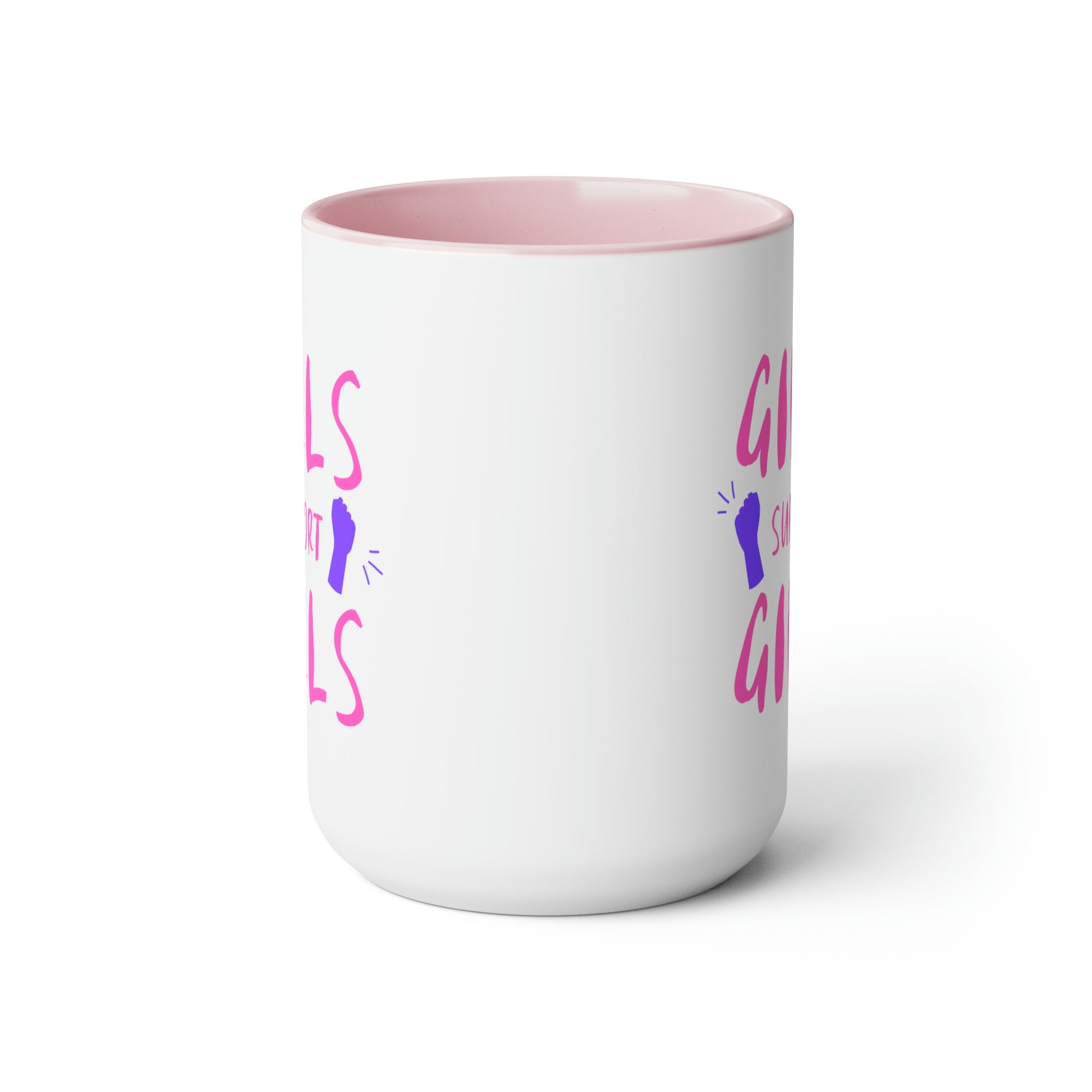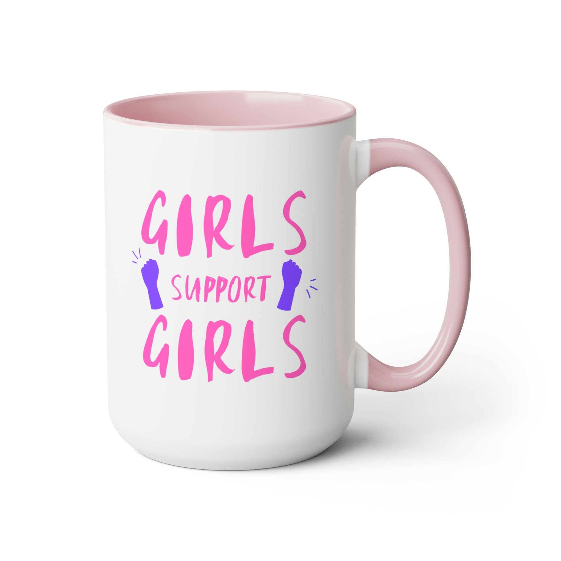 Girls Support Girls - 15oz Large Coffee Mugs - Inspirational Pink Coffee Mug, Gift for Women, Girl Power Gift, Gift for Women's History Month