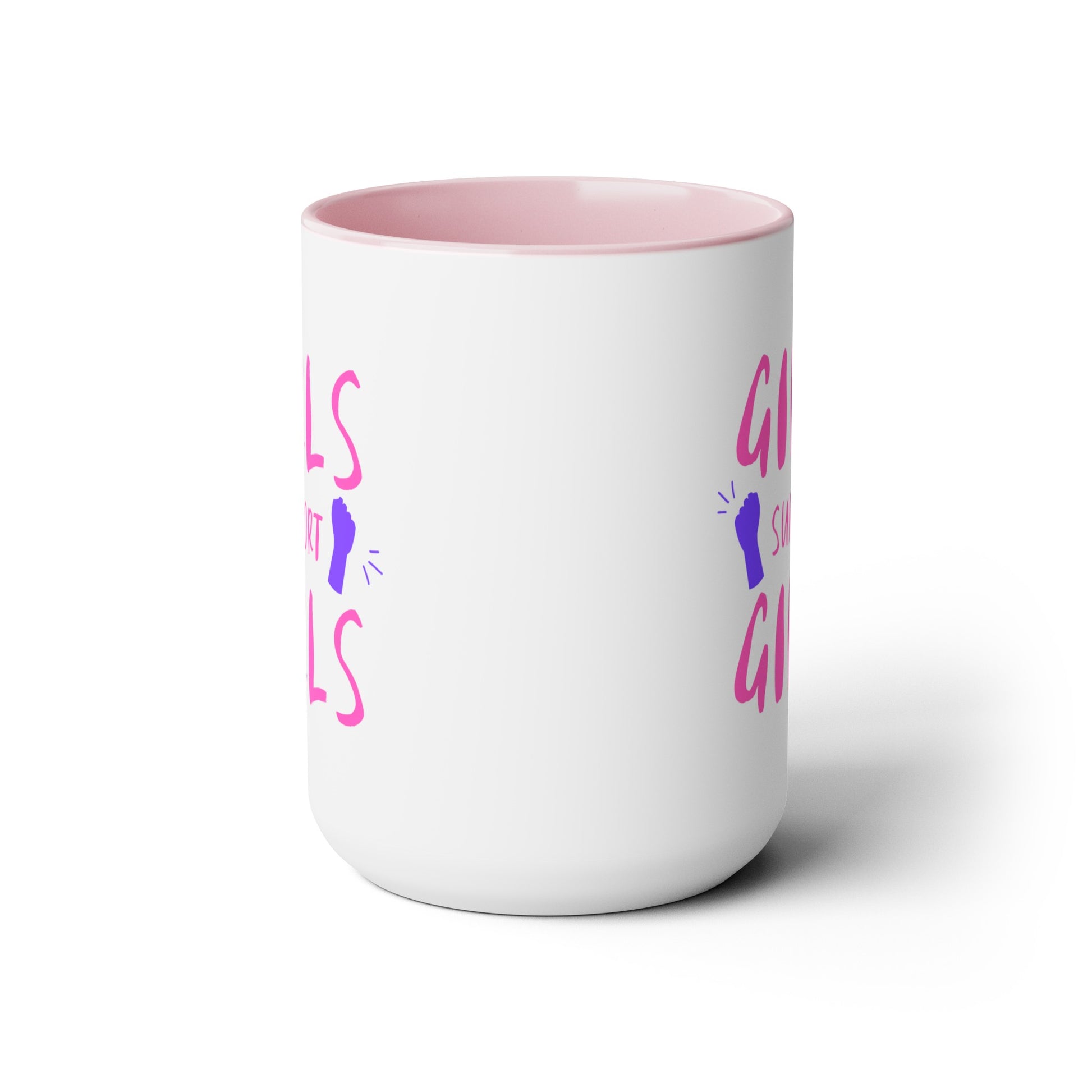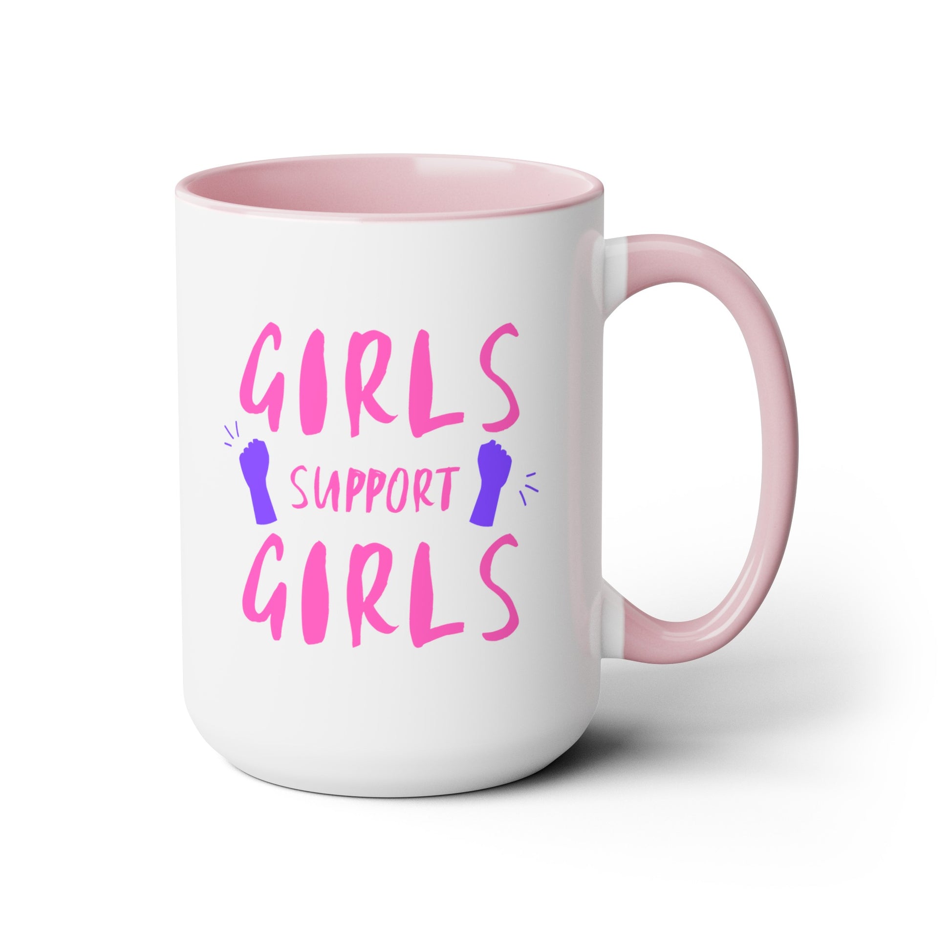 Girls Support Girls - 15oz Large Coffee Mugs - Inspirational Coffee Mug, Gift for Women, Girl Power Gift, Gift for Women's History Month
