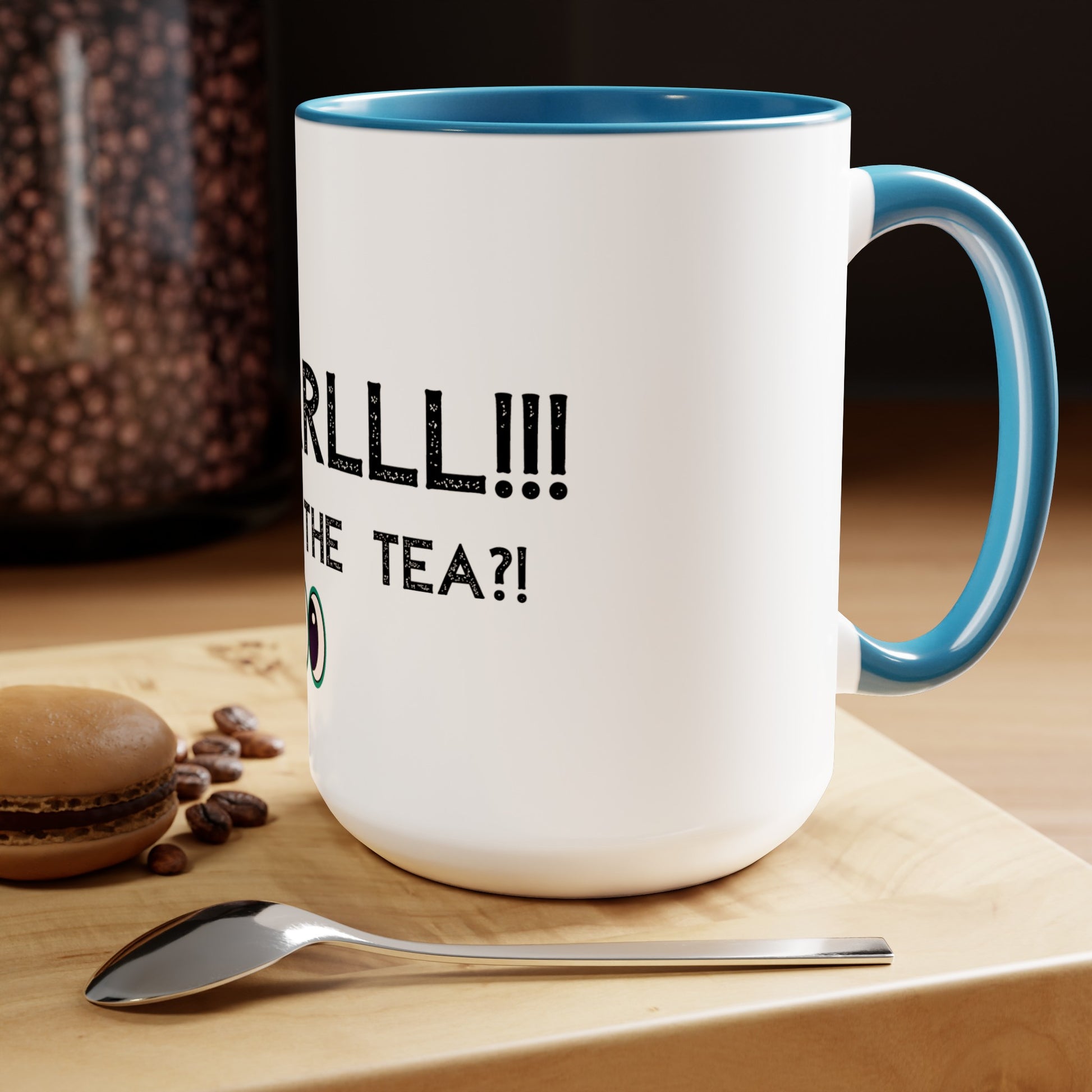 Girrrrlll!!! What's the Tea?! - 15oz Large Coffee Mugs - Funny Tea Mug, Gift for Women, Morning Tea Gossip, Gag Gift for Best friend