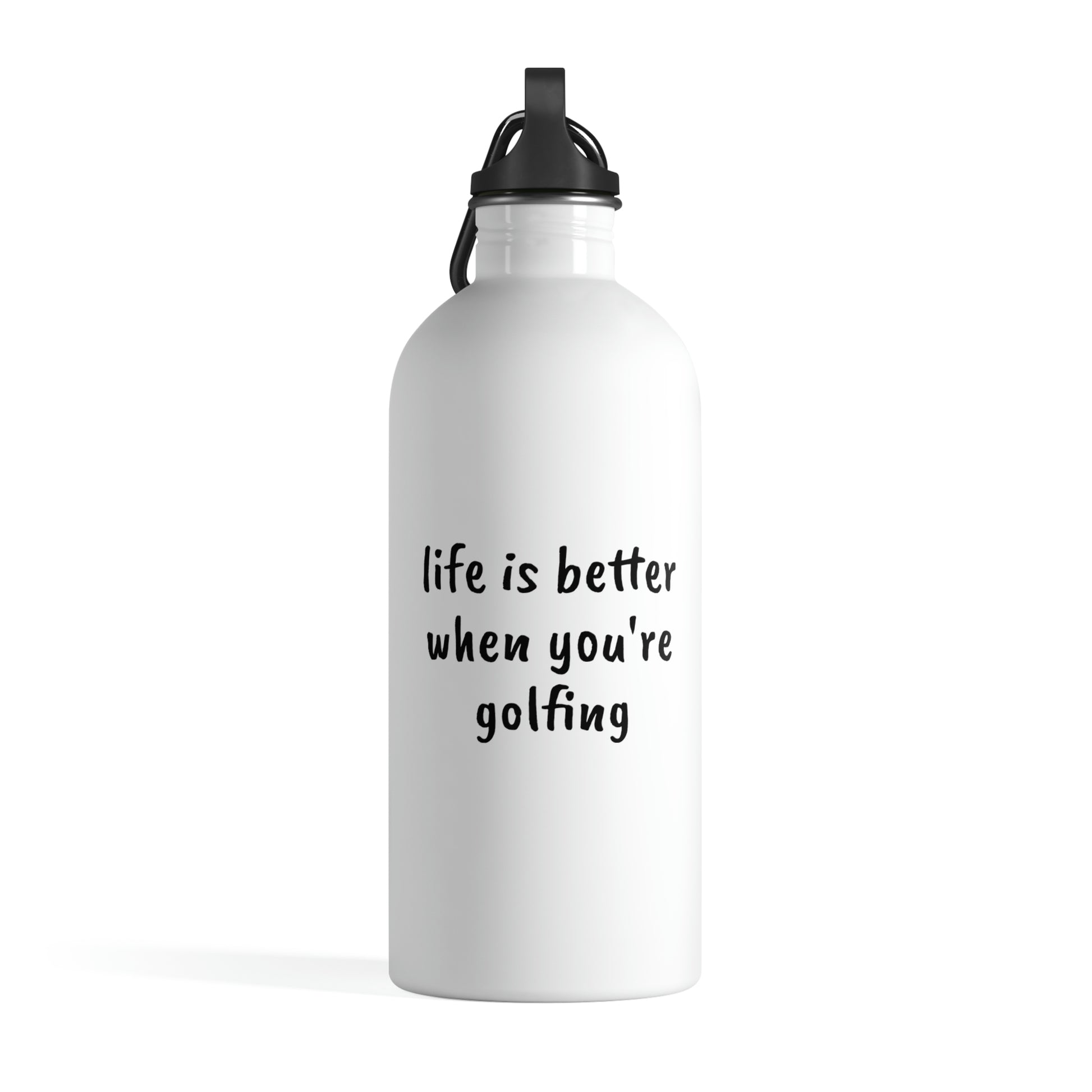 Hydrating is essential, why not do it in style? Our "LIFE IS BETTER WHEN YOU'RE GOLFING" stainless steel water bottle has a plastic screw top to keep ones bag dry, while amazing quality print makes it as appealing as practical. For travels, dance classes, or on a desk next to ones laptop - an excellent choice for every occasion.