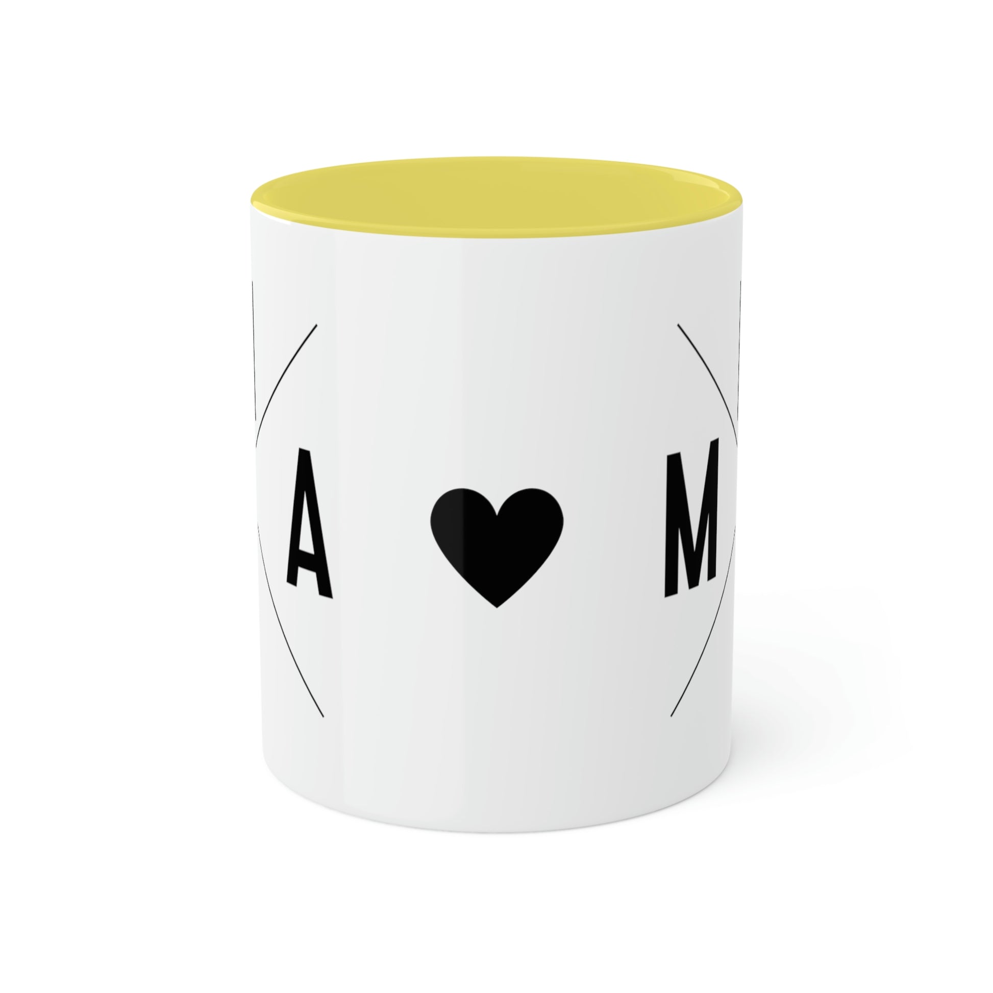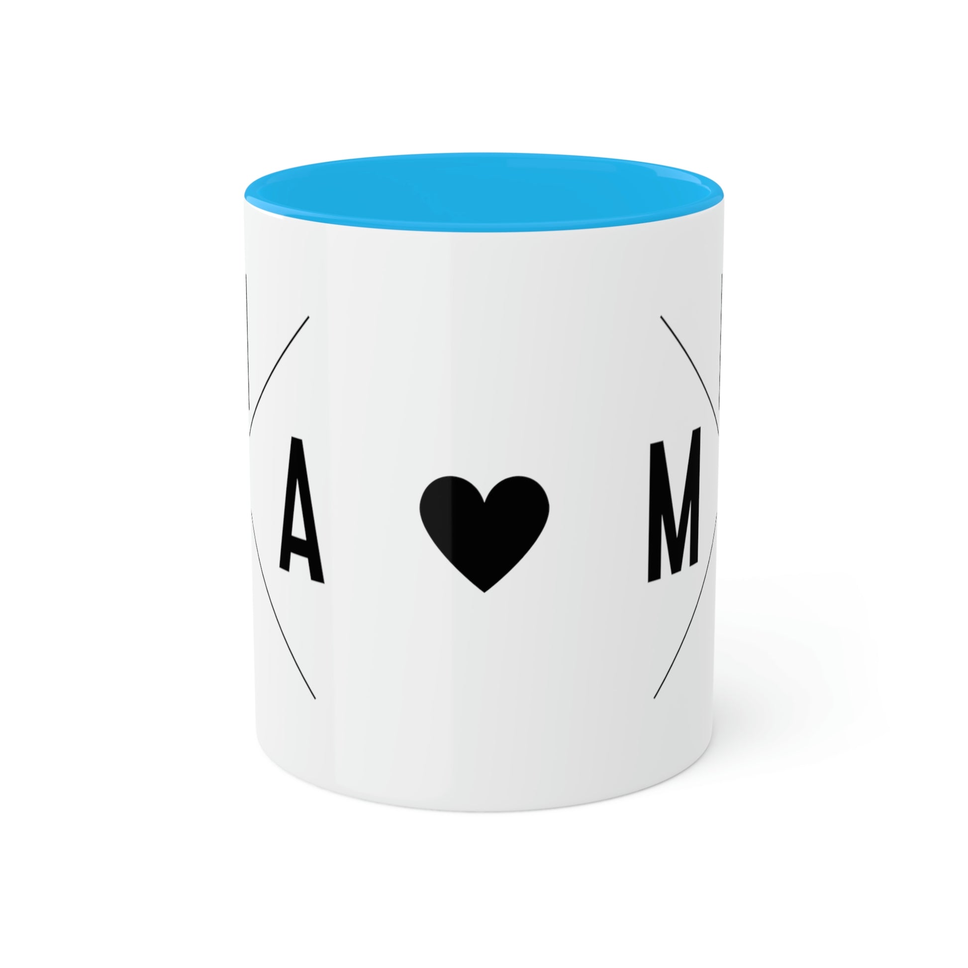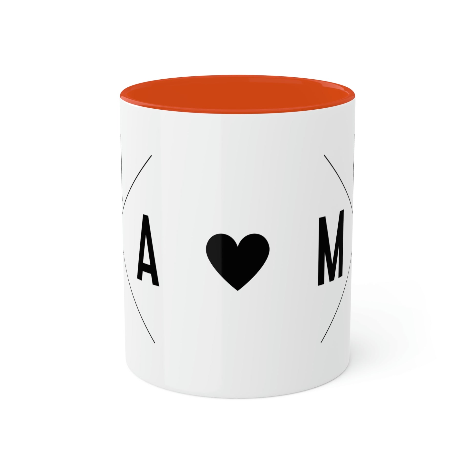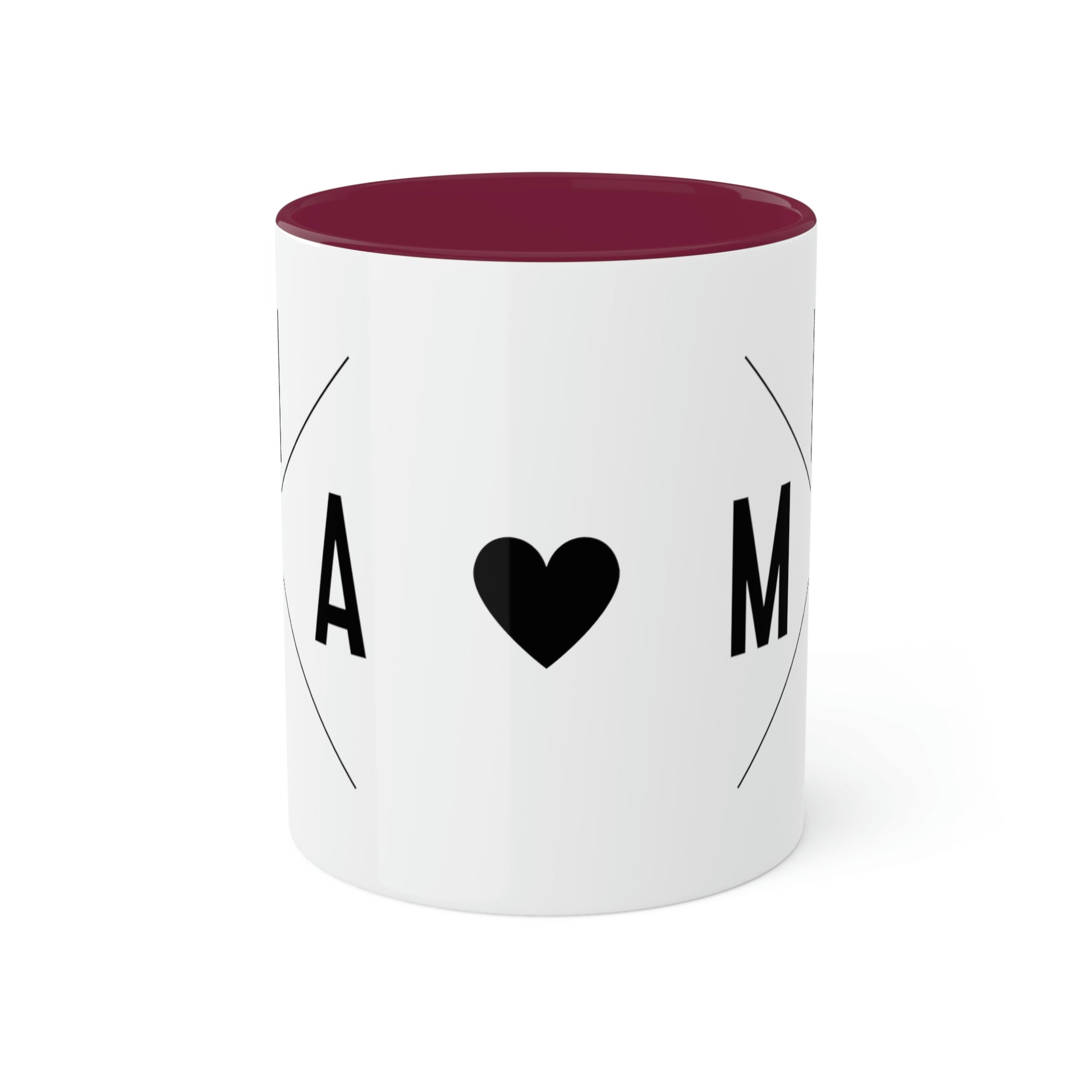 Mugs are a staple in every kitchen and when they're combined with a custom flair, they become instant favorites. Our "MAMA QUEEN OF HEARTS" coffee/tea mug is available in 12 cheerful color options, these mugs hold 11oz of your favorite beverage and come with a colored handle and interior. The glossy finish adds a classy touch that perfectly complements the high-fidelity artwork print. .: Material: 100% glossy ceramic .: One size: 11oz (0.33l) .: Easy-grip C-shaped handle