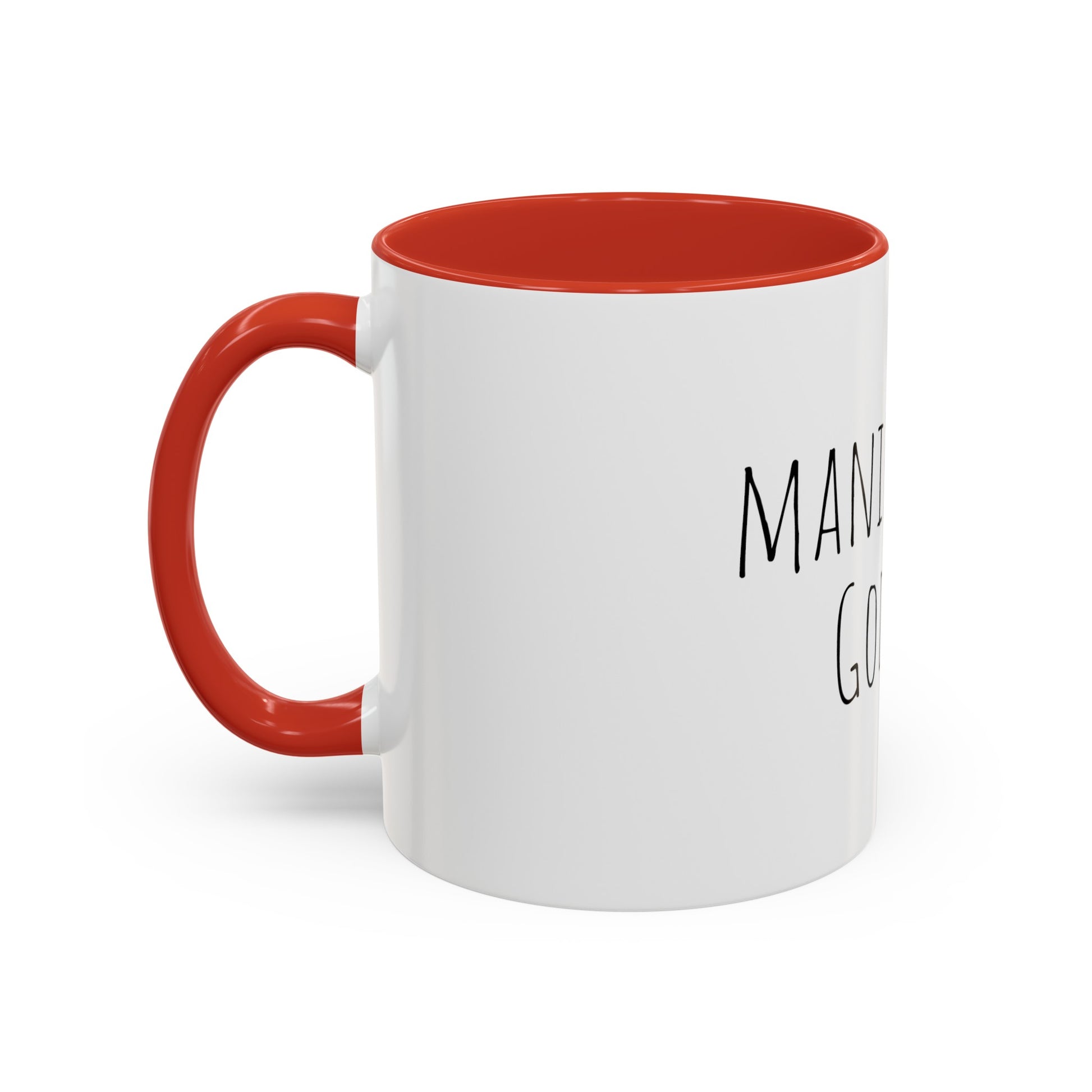 Add some color to your routine with our "MANIFESTING GODDESS" two-tone, custom accent coffee mug. This 11oz mug features an accented C-Handle that is comfortable to use, as well as an accented interior to add more contrast and character.