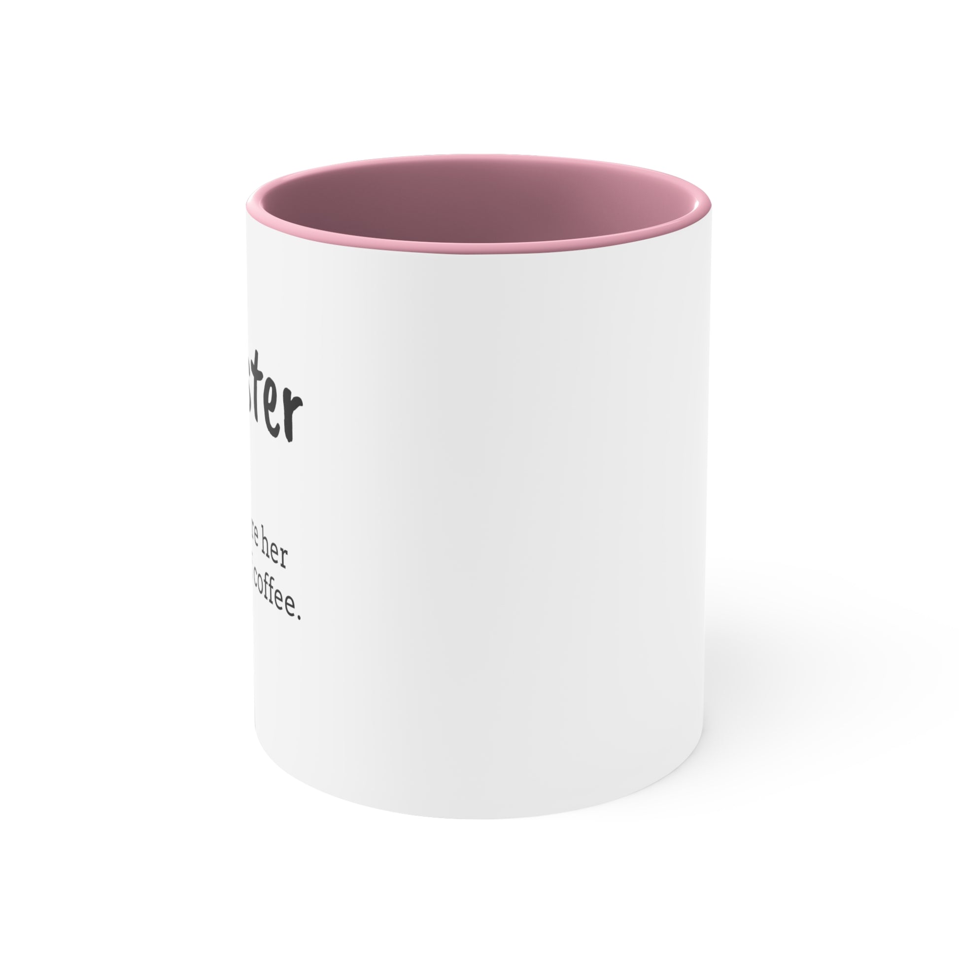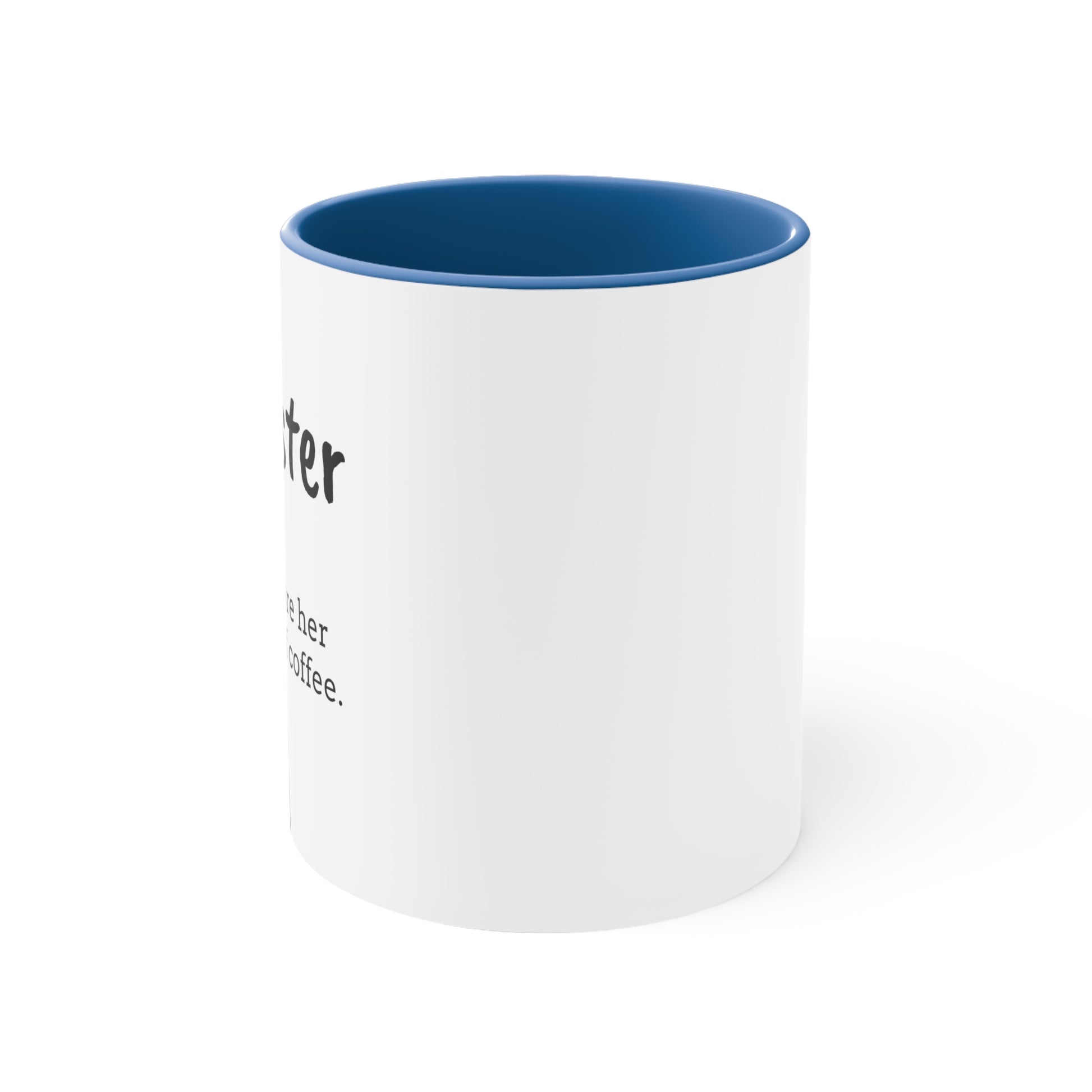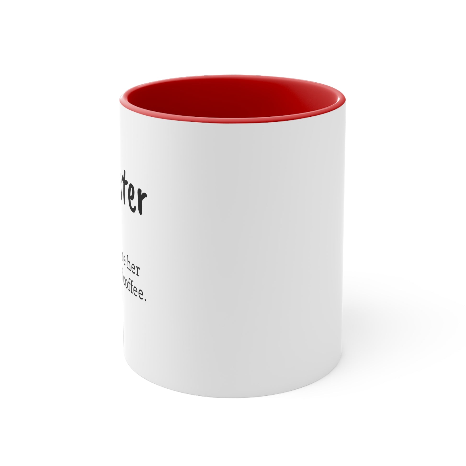 Add some color and humor to your morning routine with our "MOMSTER, MOM BEFORE HER FIRST CUP OF COFFEE" two-tone, custom accent coffee mug. This 11oz mug features an accented C-Handle that is comfortable to use, as well as an accented interior to add more contrast and character.