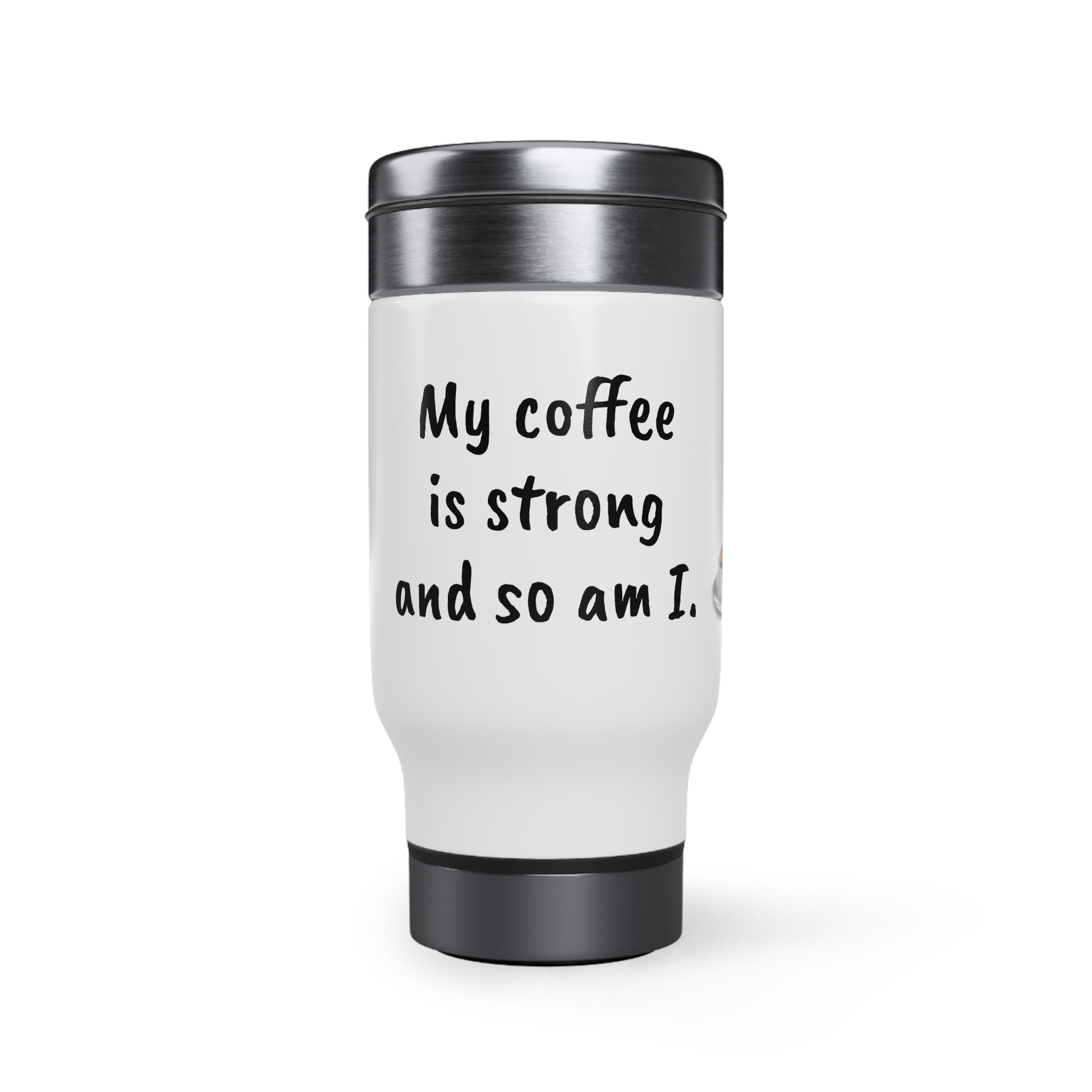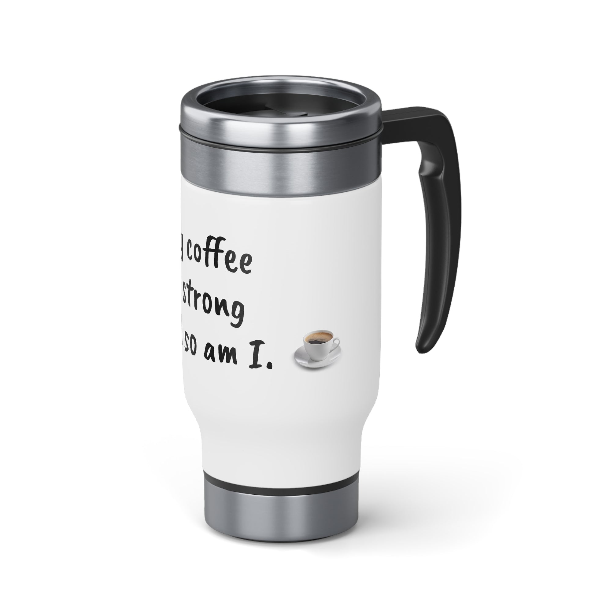 My Coffee is Strong and So am I - Stainless Steel Travel Mug with Handle, 14oz - Engraved Tumbler, Funny Mug Gift, Funny Travel Mug, Motivation Tumbler, Gift for Friends, Adult Tumbler Gift