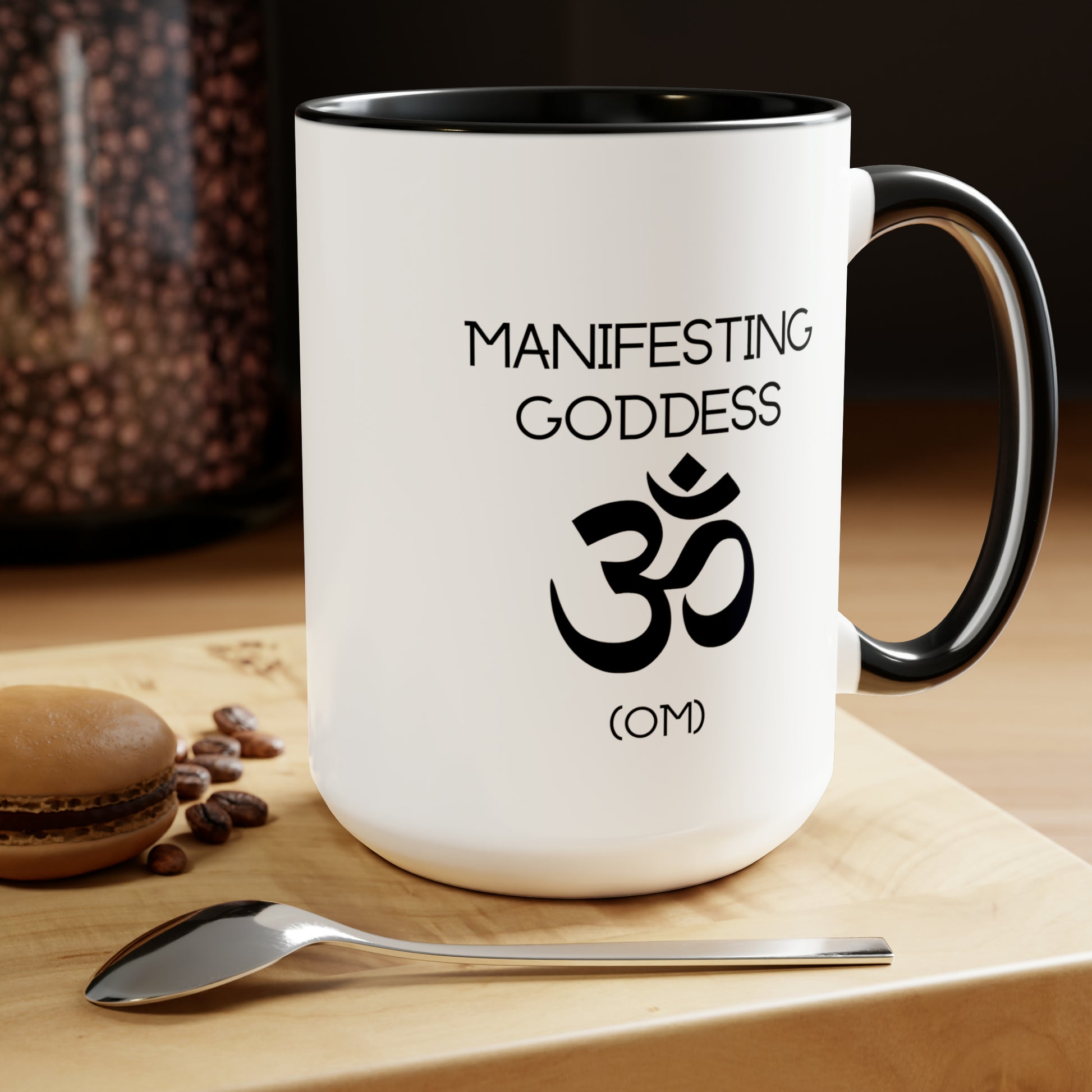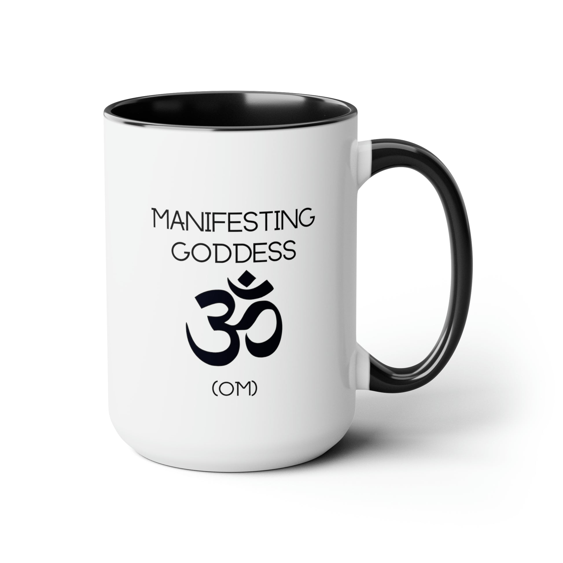Here to bring big gulps of coffee and style, our "OM MANIFESTING GODDESS" two-tone coffee mugs are the perfect gift for your Goal Oriented, Manifesting Friend. Choose between 5 different color options to best complement your designs. Each mug comes with a colored handle, a colored interior, and a classy, glossy finish so that your mugs become an instant favorite. .: Material: 100% ceramic .: One size: 15oz (0.44 l) .: Glossy finish .: Interior and handle available in 5 colors .: Easy-grip C-shaped handle