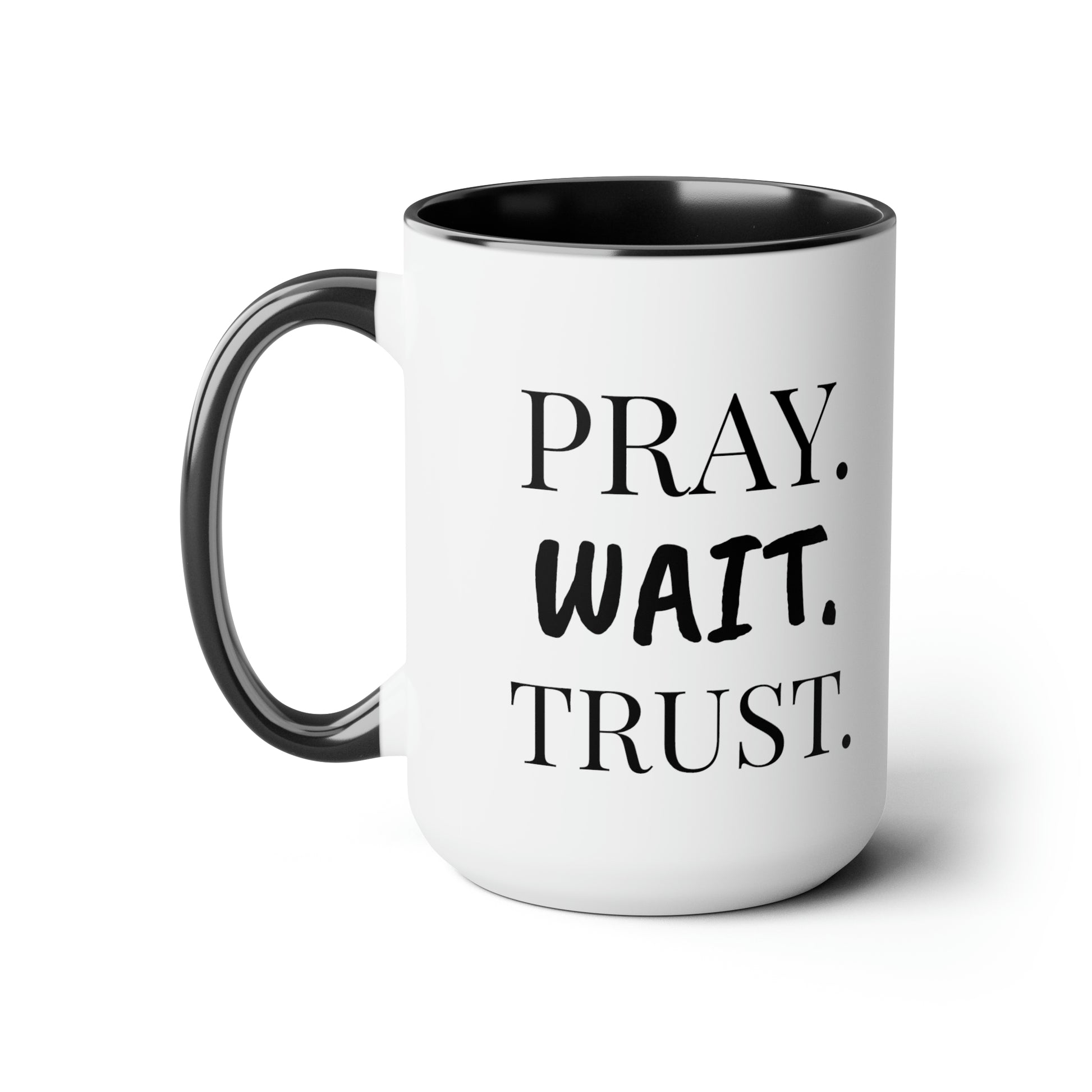 Pray. Wait. Trust. - XL 15oz Coffee Mugs, Inspirational Coffee Mug, Religious Coffee Mug, Mugs With Sayings, Gift for Women and Men, Gift for Him and Her, Motivational Coffee Mug