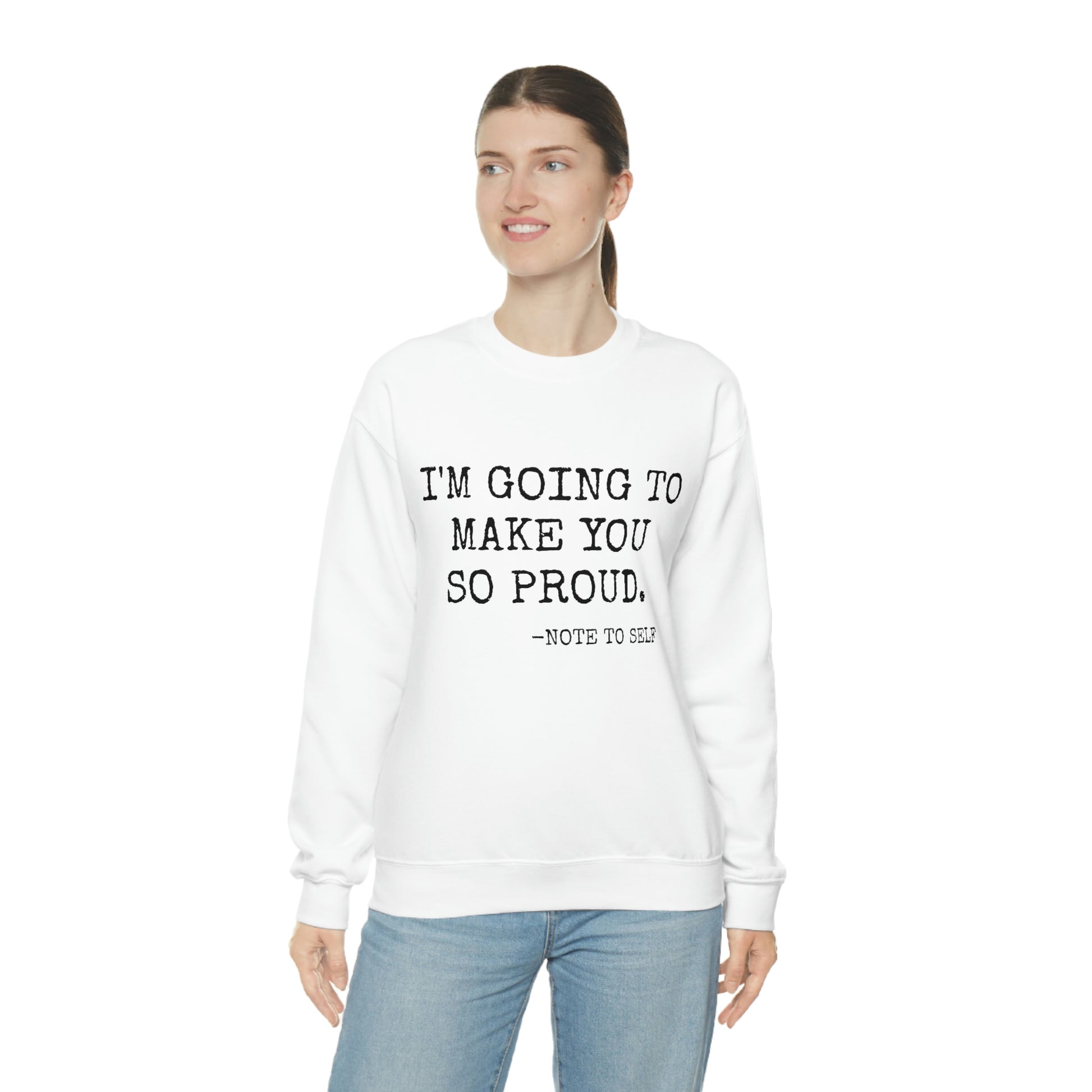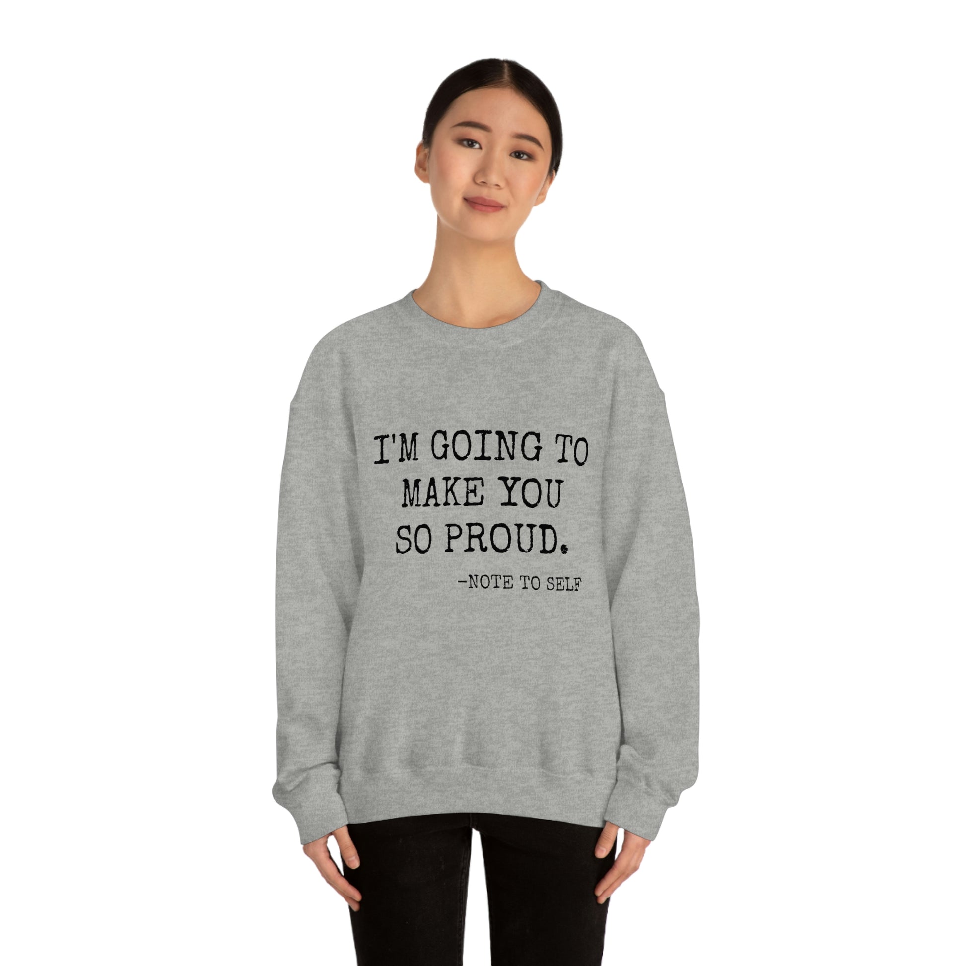 Proud - Heavy Blend Crewneck Sweatshirt - Inspirational, Motivational Message, Gift for Daughter or Mom or Friend, Streetwear Style