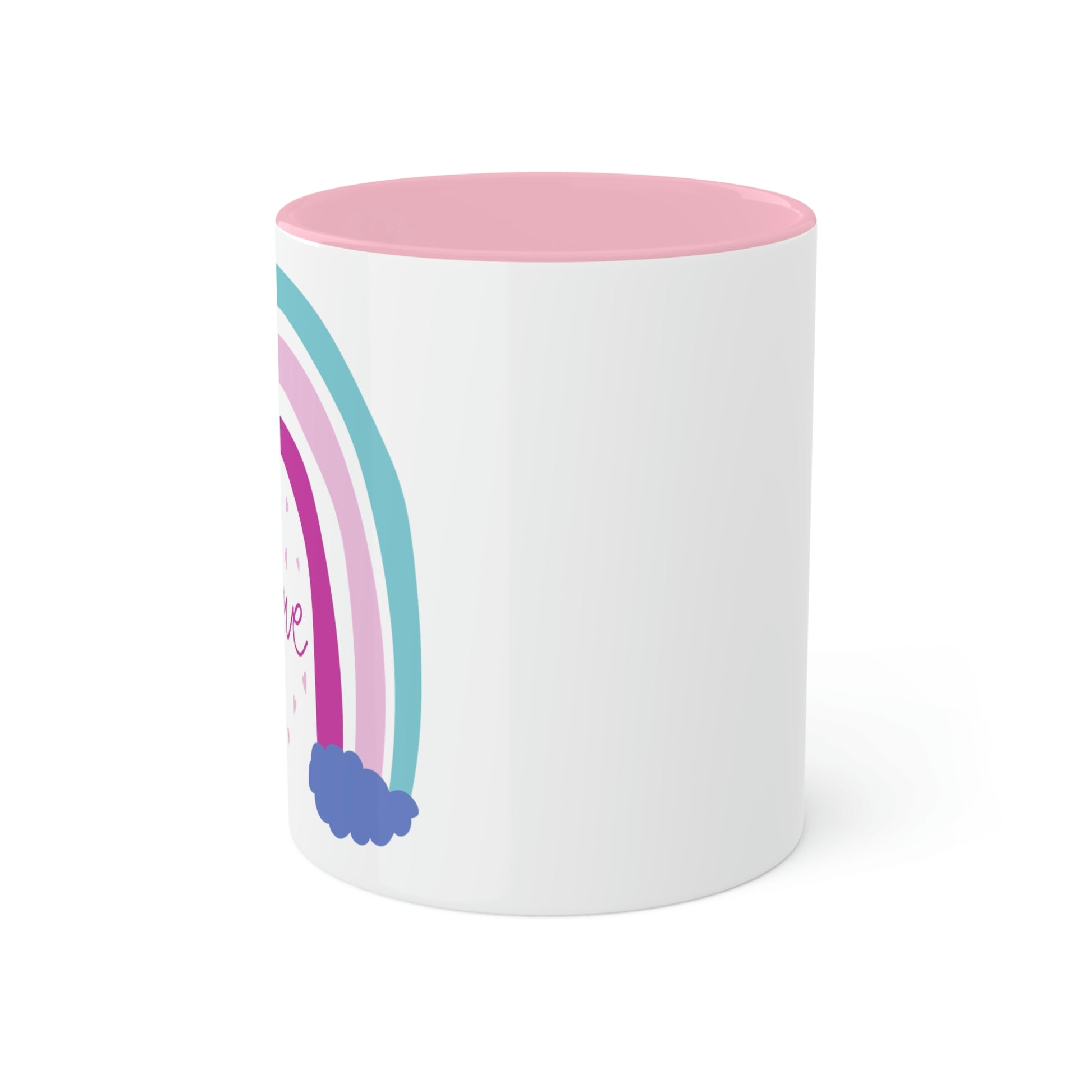 Mugs are a staple in every kitchen and when they're combined with a custom flair, they become instant favorites. Our "RAINBOW LOVE" coffee/tea mug is available in 2 cheerful color options, these mugs hold 11oz of your favorite beverage and come with a colored handle and interior. The glossy finish adds a classy touch that perfectly complements the high-fidelity artwork print. .: Material: 100% glossy ceramic .: One size: 11oz (0.33l) .: Easy-grip C-shaped handle
