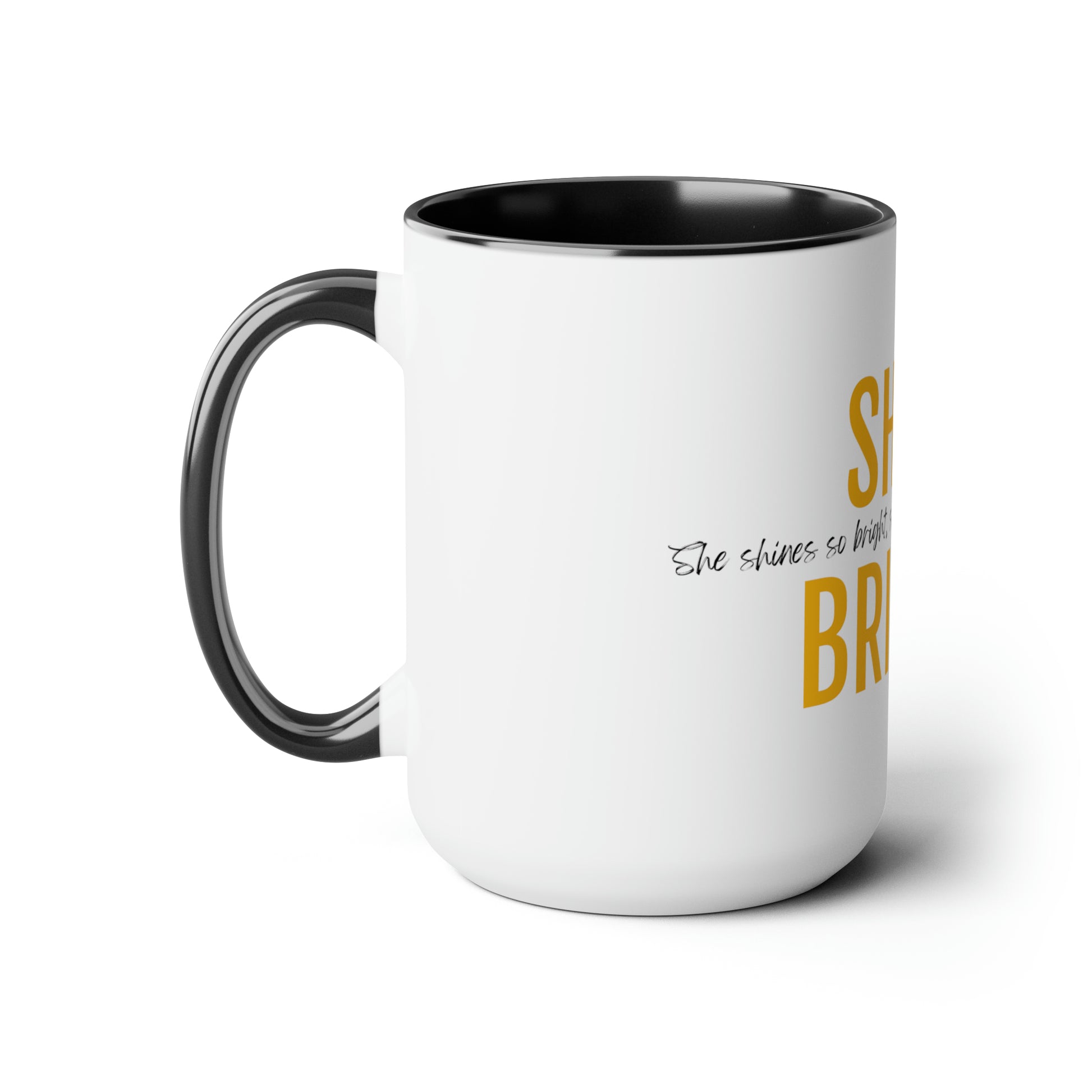 Shine Bright! She shines so bright, she lights up... - 15oz Large Coffee Mugs - Inspirational, Motivational Mugs, Gift For Daughter or Mom or Sister