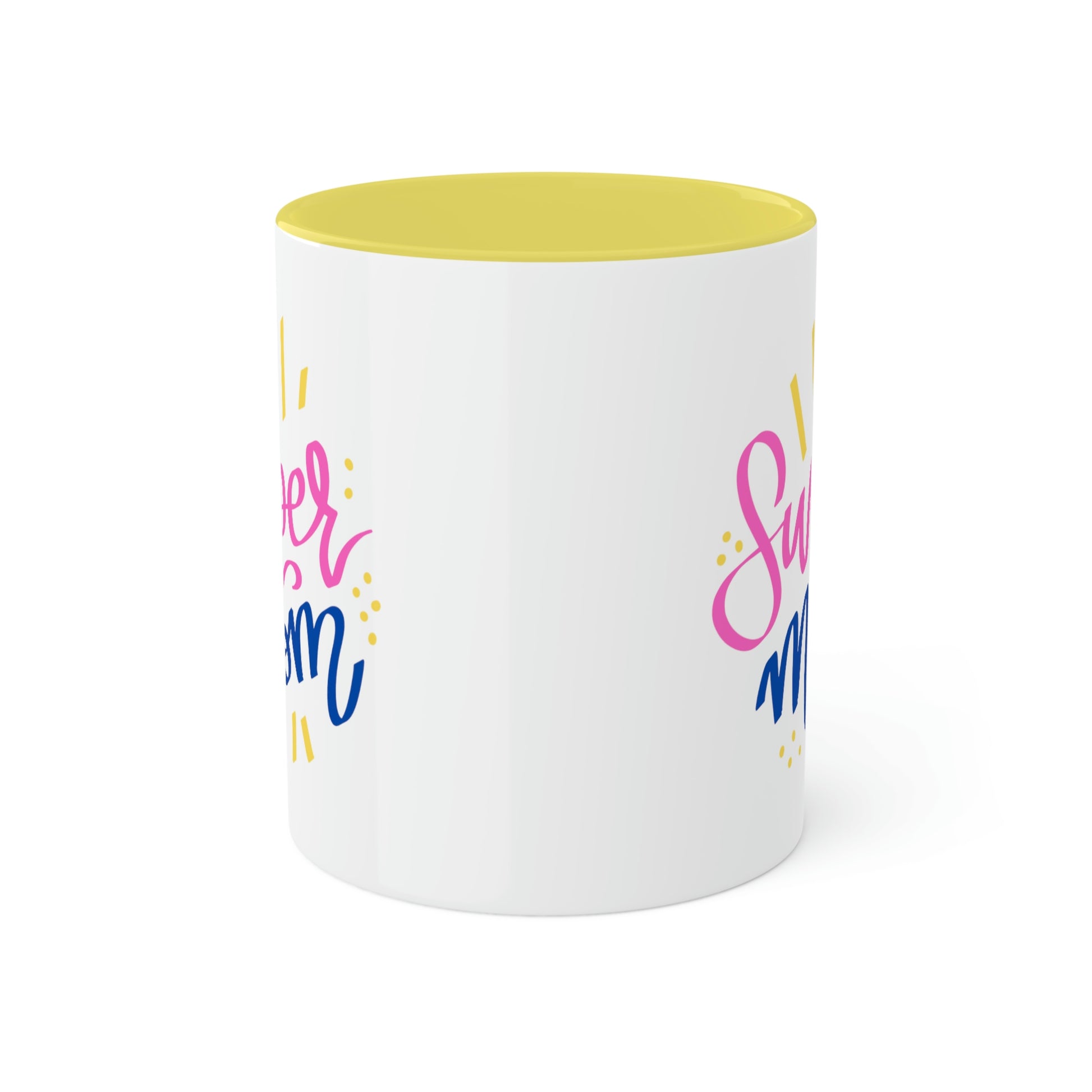 Mugs are a staple in every kitchen and when they're combined with a custom flair, they become instant favorites. Available in 2 color options, our "SUPER MOM" mugs hold 11oz of your favorite pick-me-up juice and come with a colored handle and interior. The glossy finish adds a classy touch that perfectly complements the high-fidelity artwork print. .: Material: 100% glossy ceramic .: Choose between 12 different accent colors .: One size: 11oz (0.33l) .: Easy-grip C-shaped handle