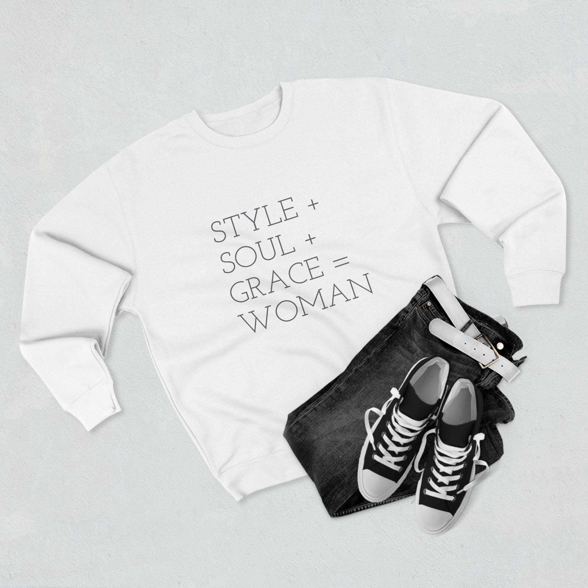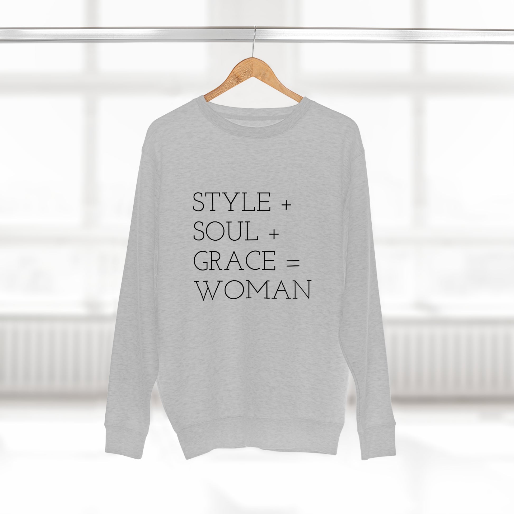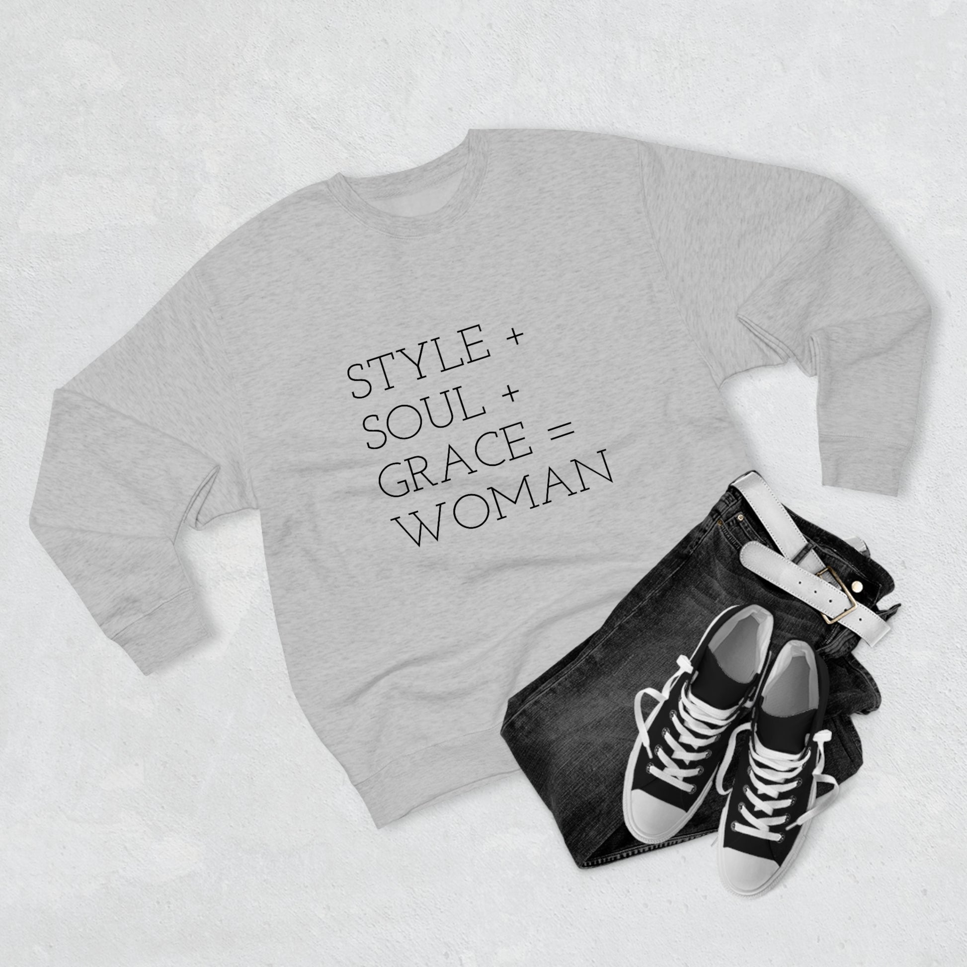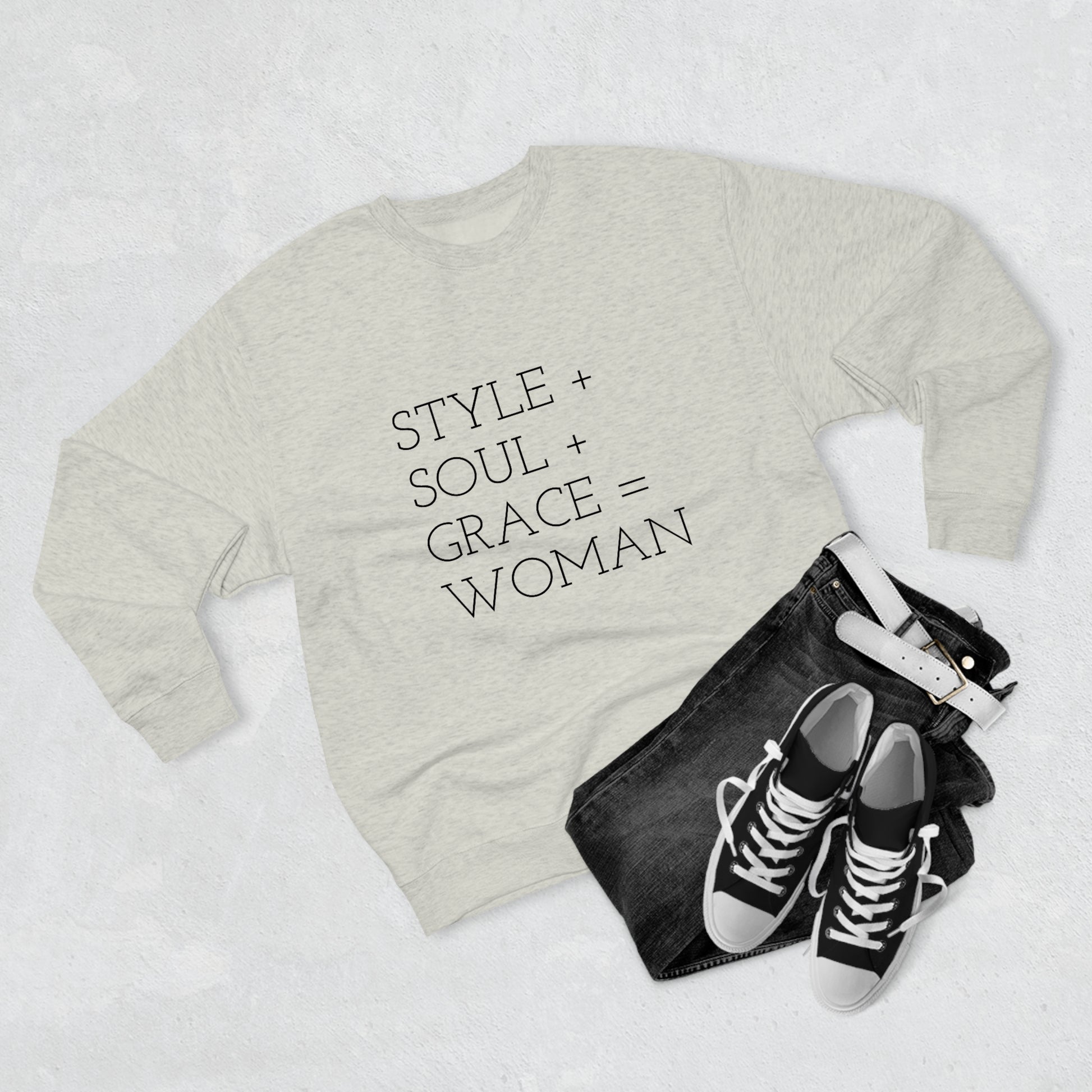 STYLE SOUL GRACE - WOMAN - Premium Crewneck Sweatshirt - Inspirational, Motivational Message, Novelty Sweatshirt, Streetwear Sweatshirt