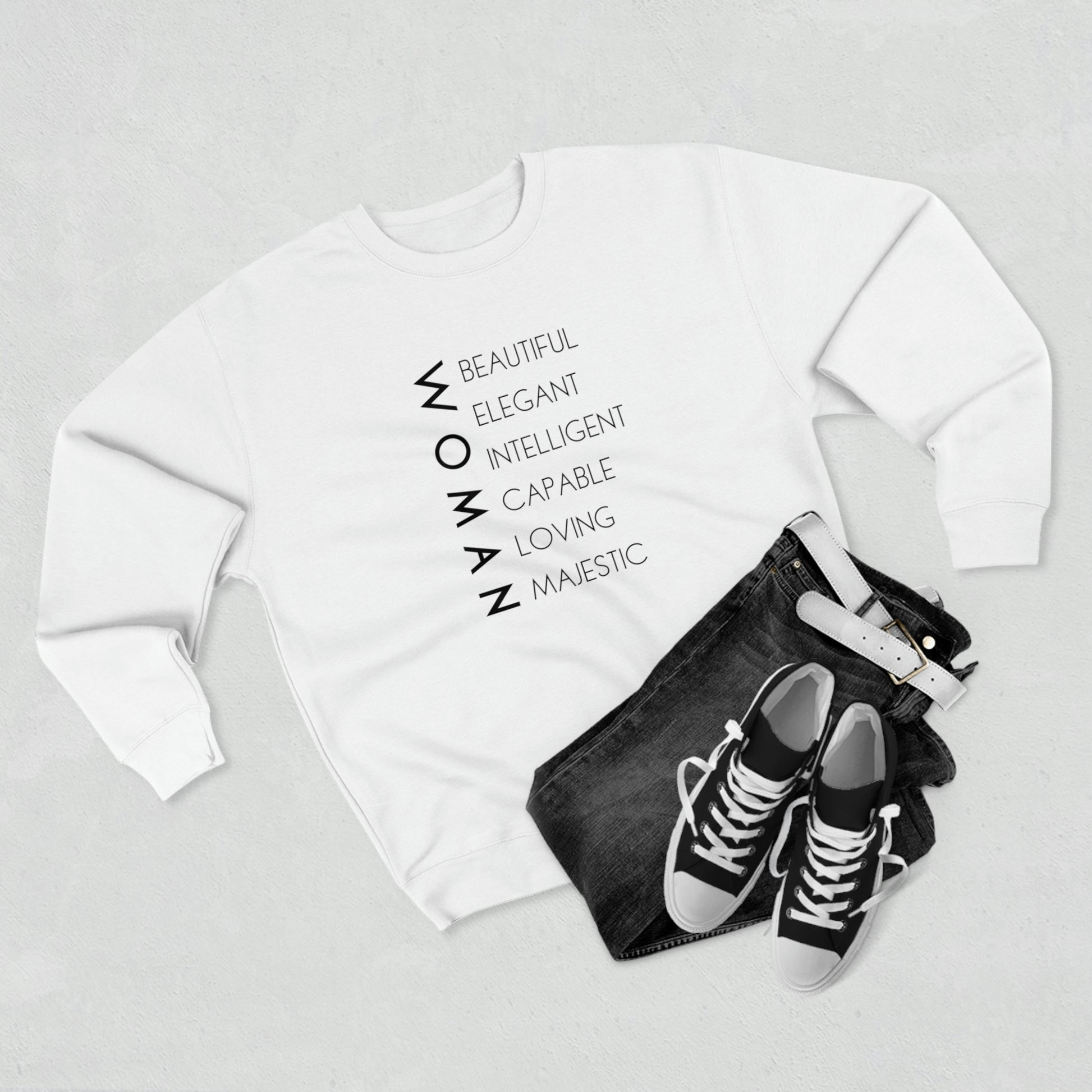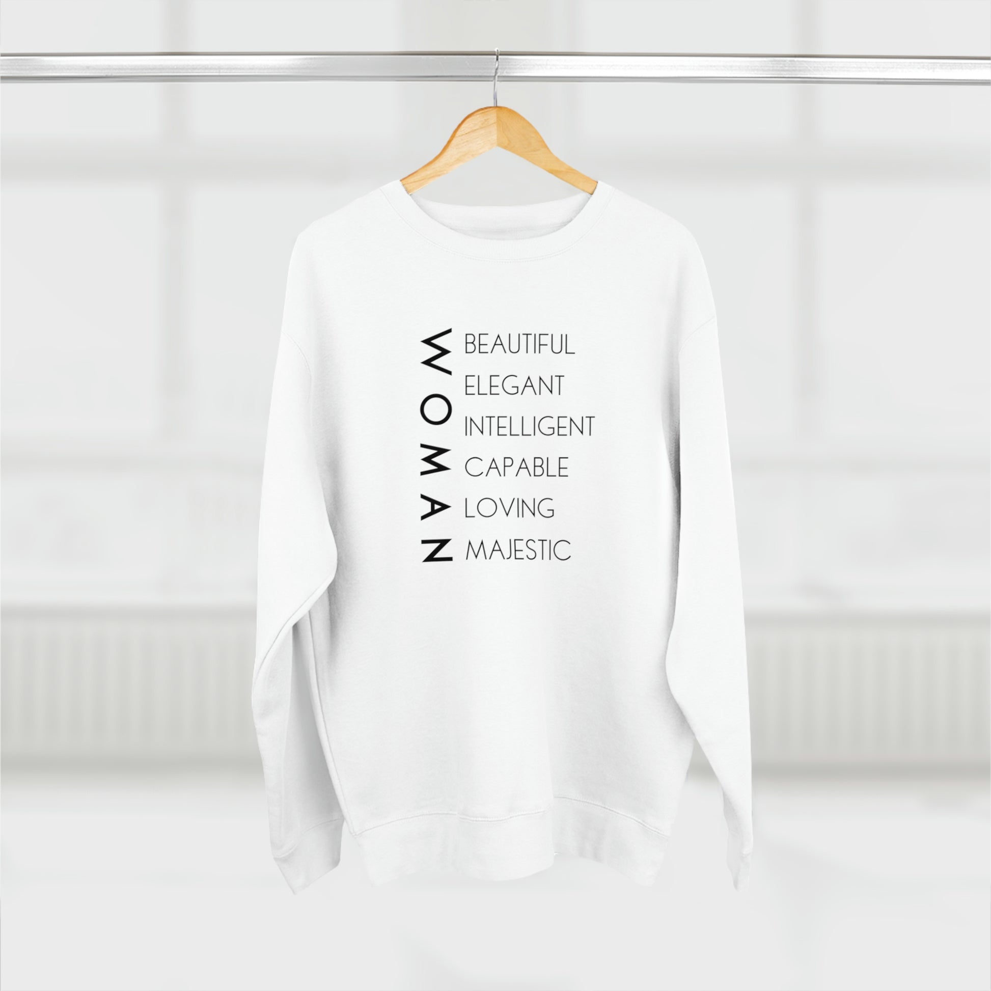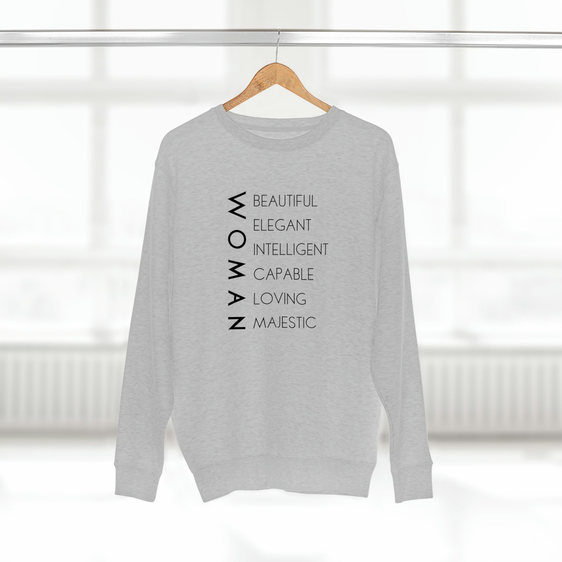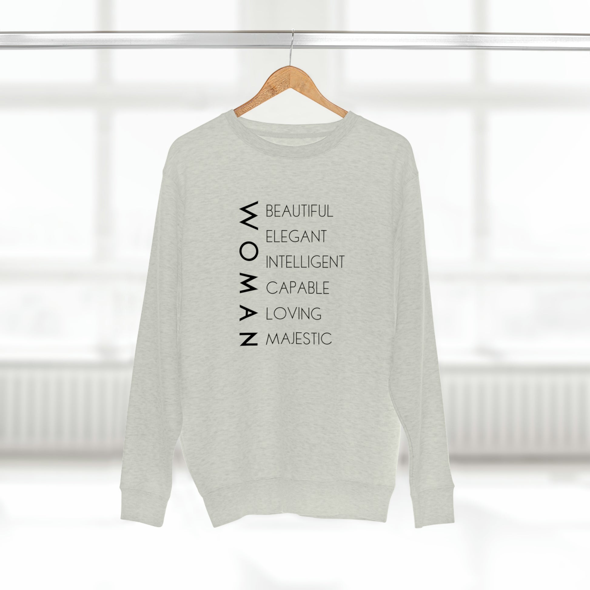 Woman - Unisex Premium Crewneck Sweatshirt - Empowerment Message, Soft Plush Sweatshirt, Strong Woman Gift, Gift Idea for Women