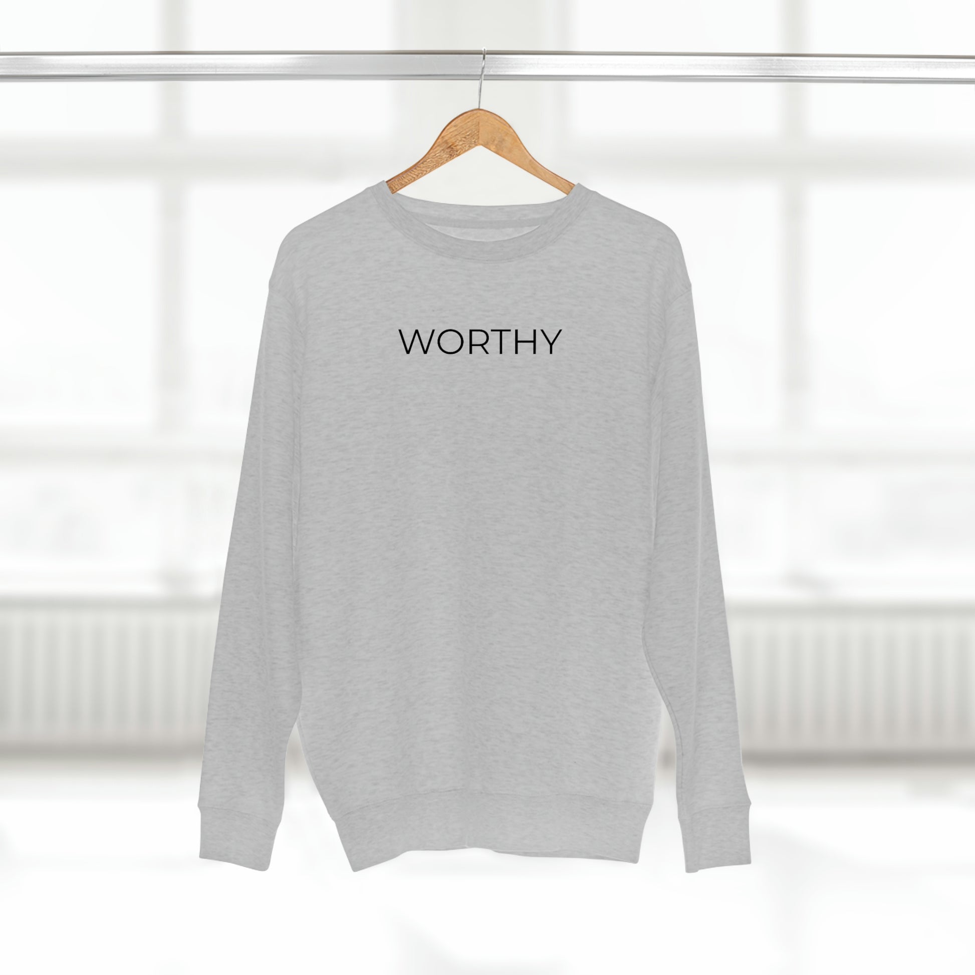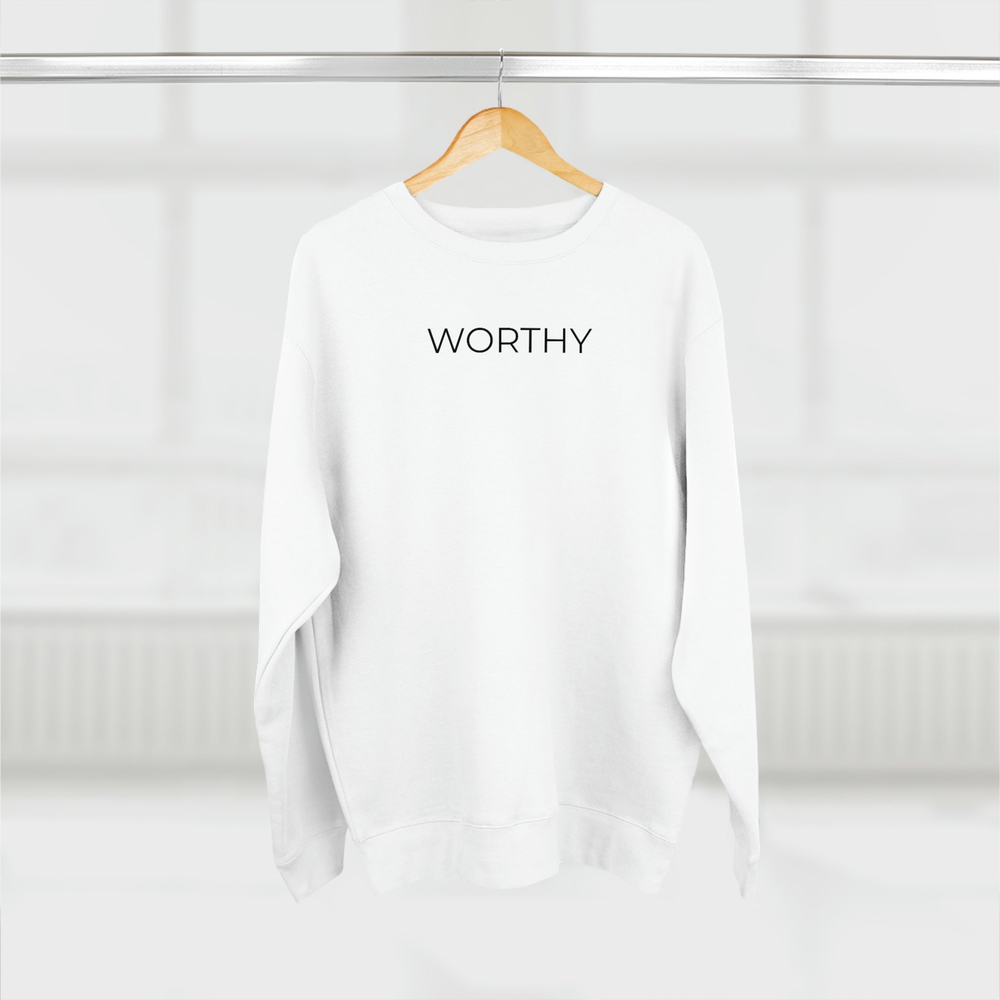 Worthy - Premium Crewneck Sweatshirt - Inspirational Message, Soft Plush Sweatshirt, Motivational Message, Streetwear